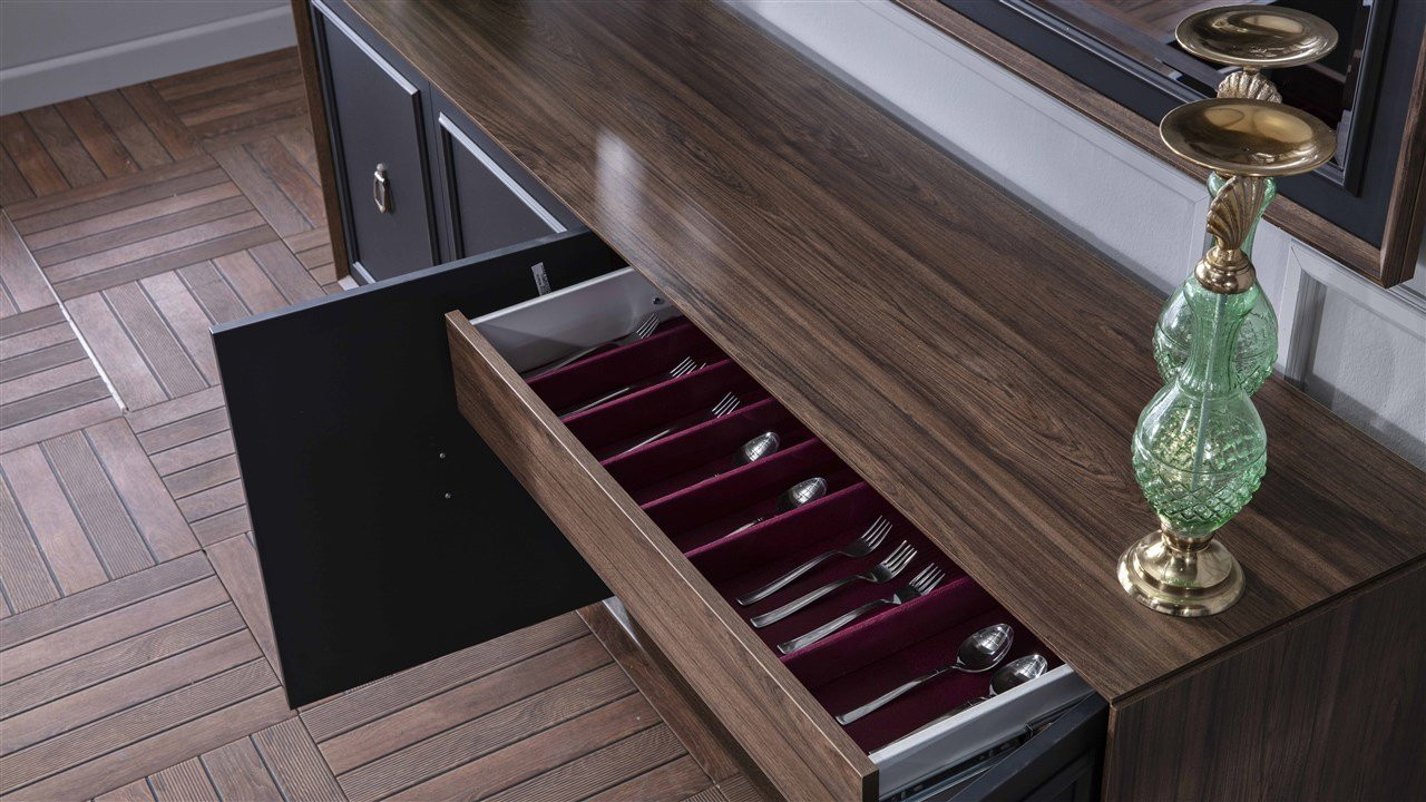 Текстура темного дерева в сочетании с черными элементами создают отличительную черту данной коллекции. Она прекрасно впишется как в темный, так и в яркий интерьер Вашего дома.