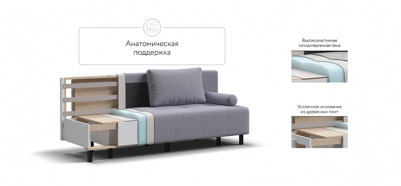 Высокие ножки из высокопрочной стали обеспечивают надежный каркас и под диван свободно заезжает робот-пылесос. Бостон Мини — ваш умный выбор для современных квартир, студий и уютных гостиных.