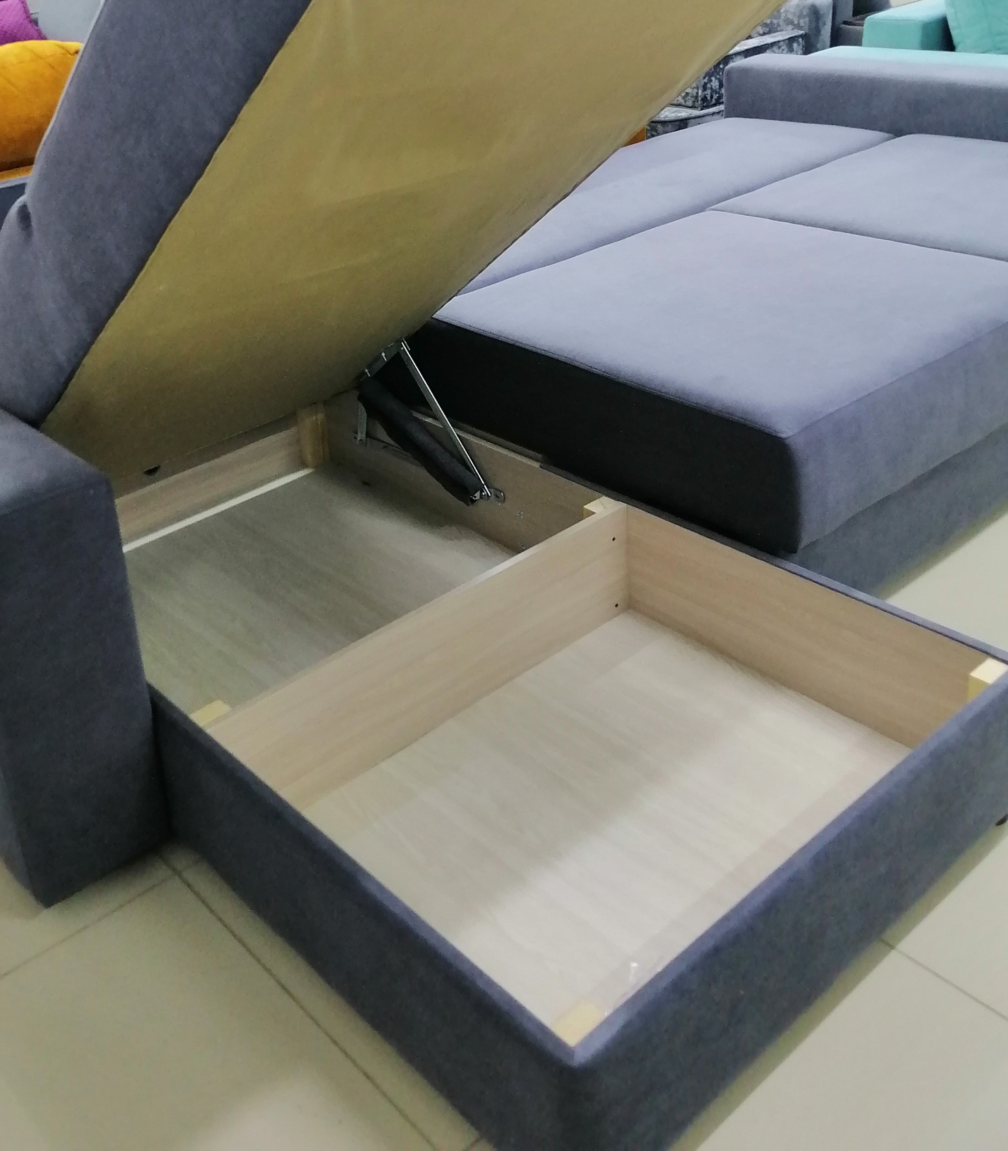 Мы позаботились и о мелочах: подушки, наполненные синтепухом, прекрасно держат форму, а дополнительная обшивка холлофайбером внутри гарантирует их долговечность и упругость.