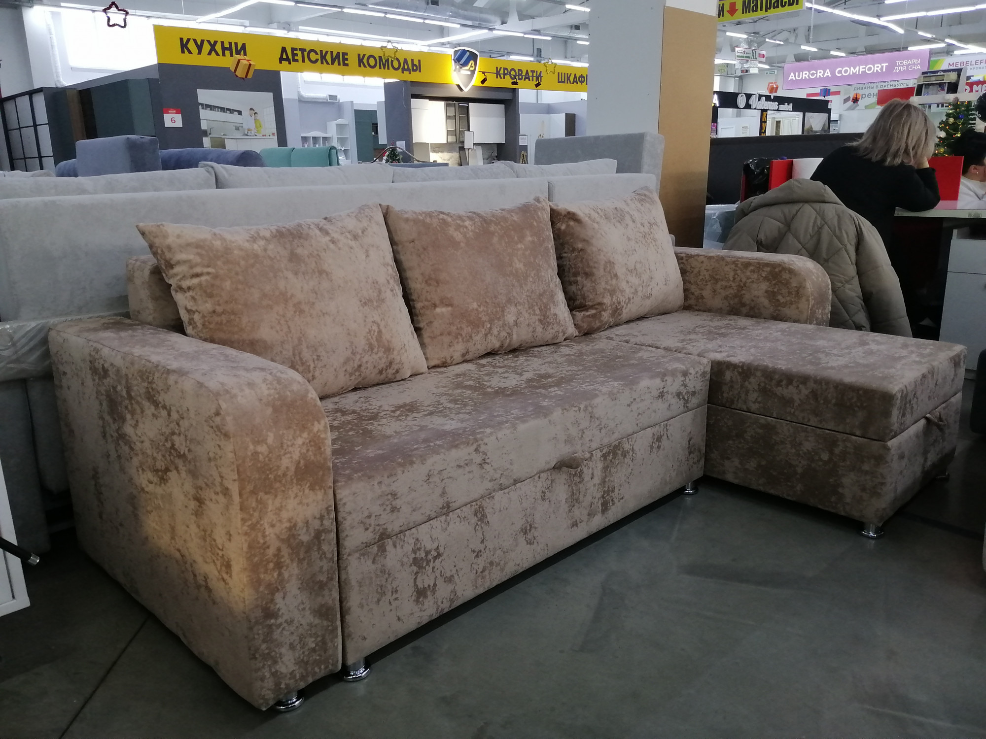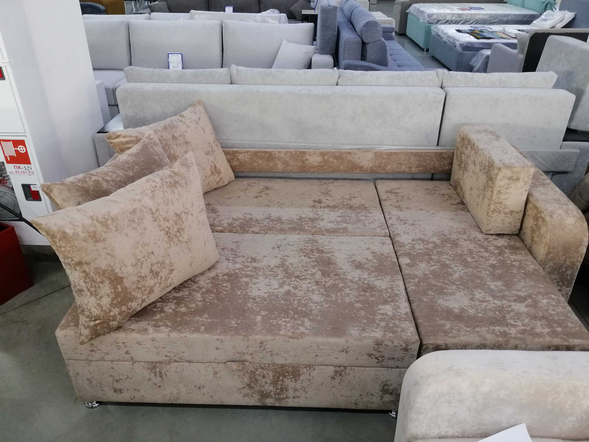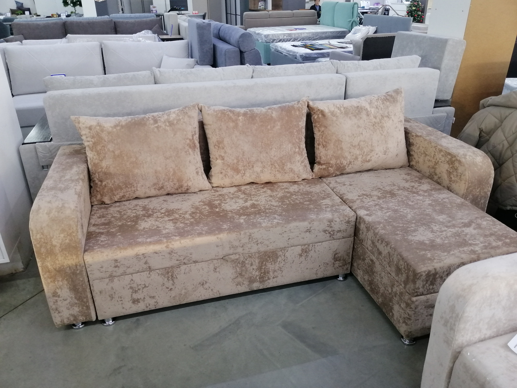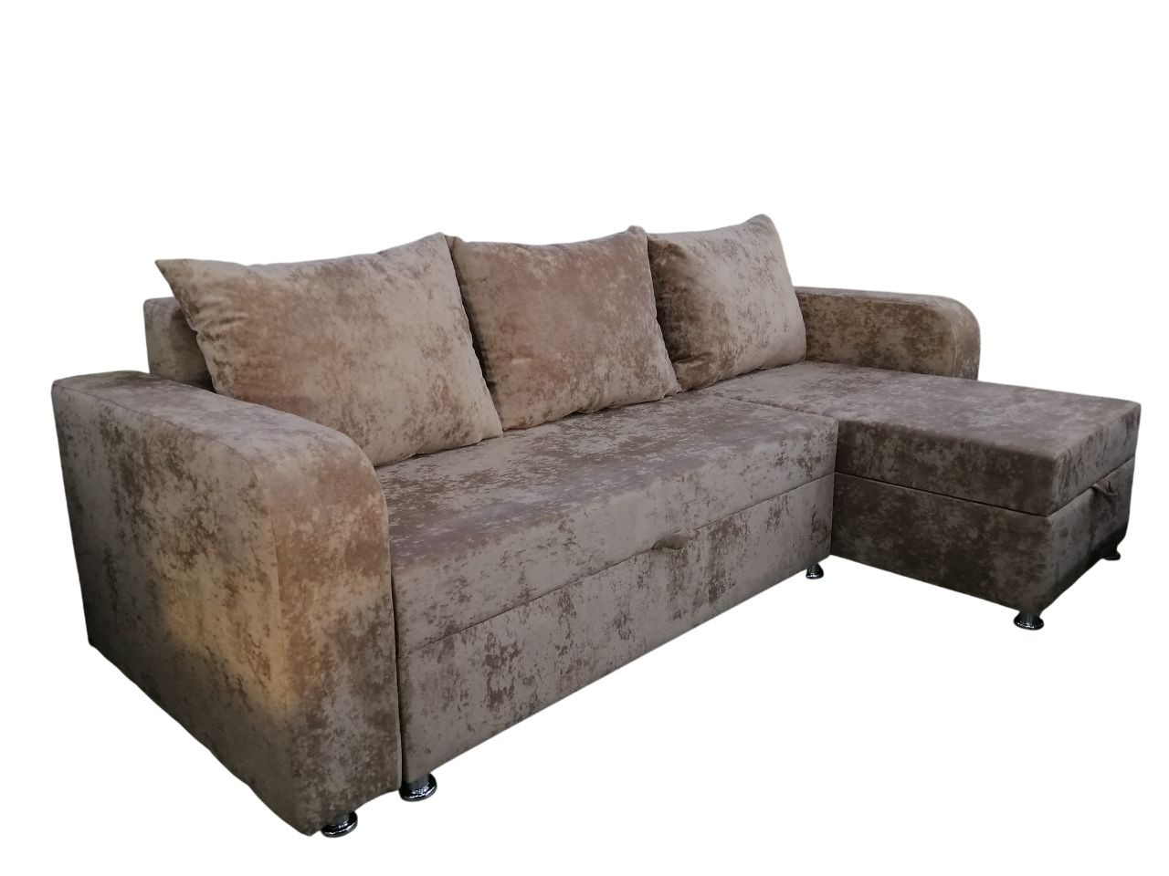 Диван Евроугол с оттоманкой пенополиуретан бежевый плюш 230*145