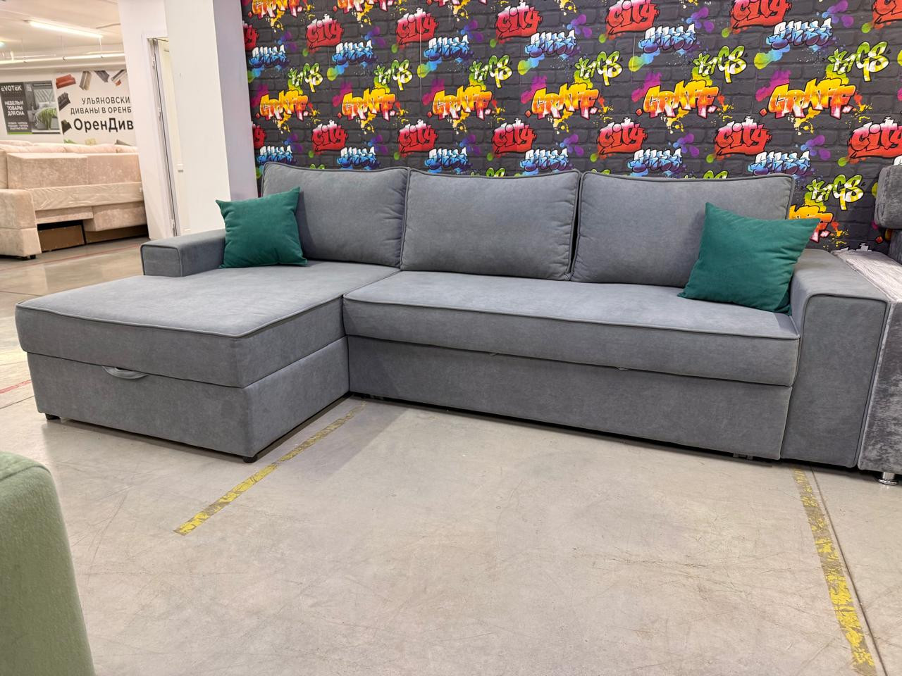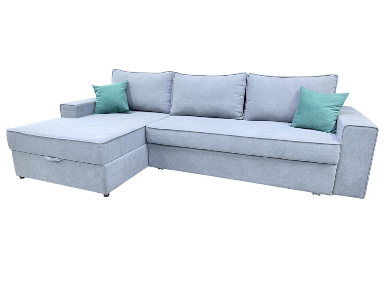 Диван-кровать угловой Алиса серый велюр 296х108