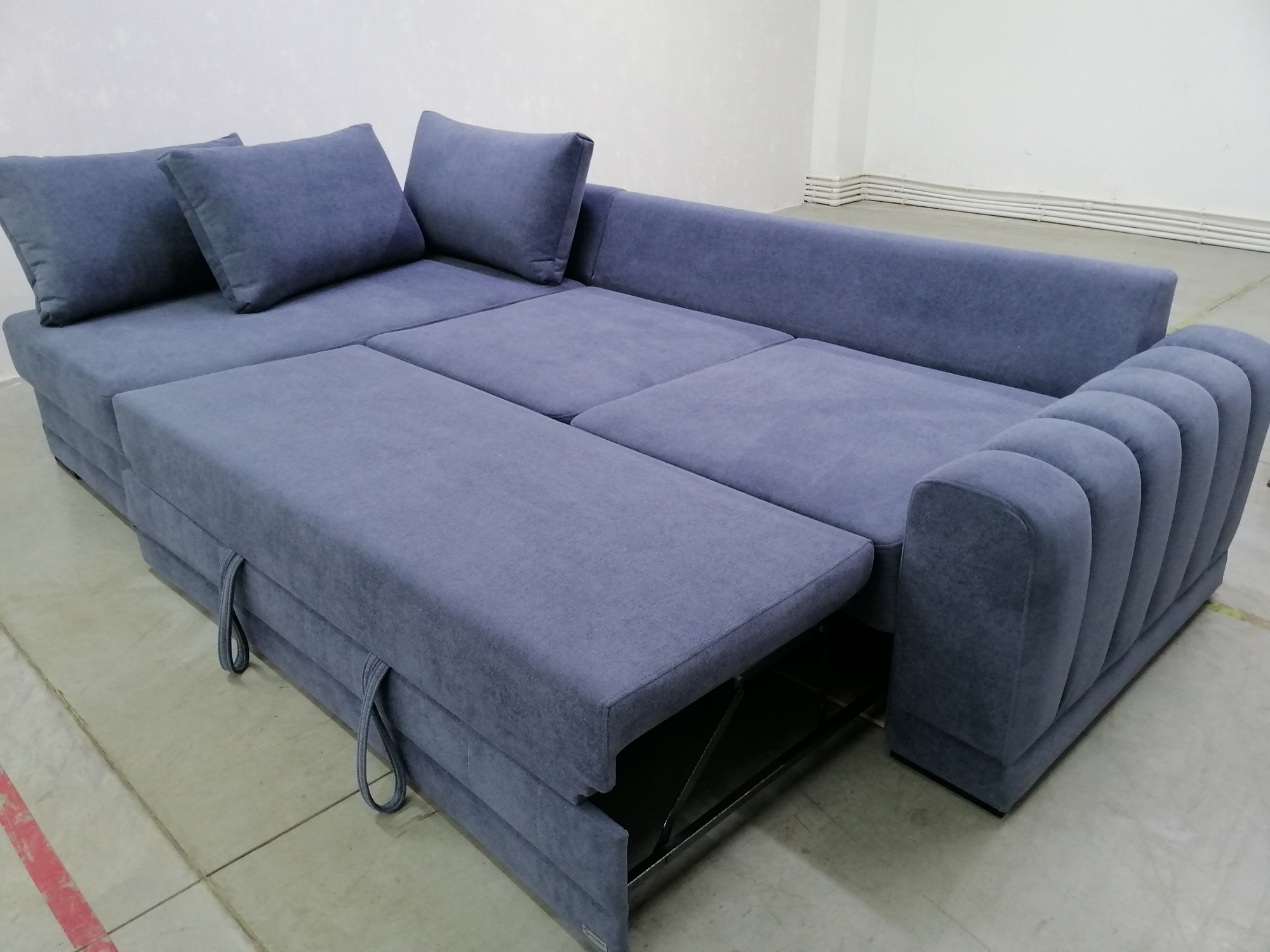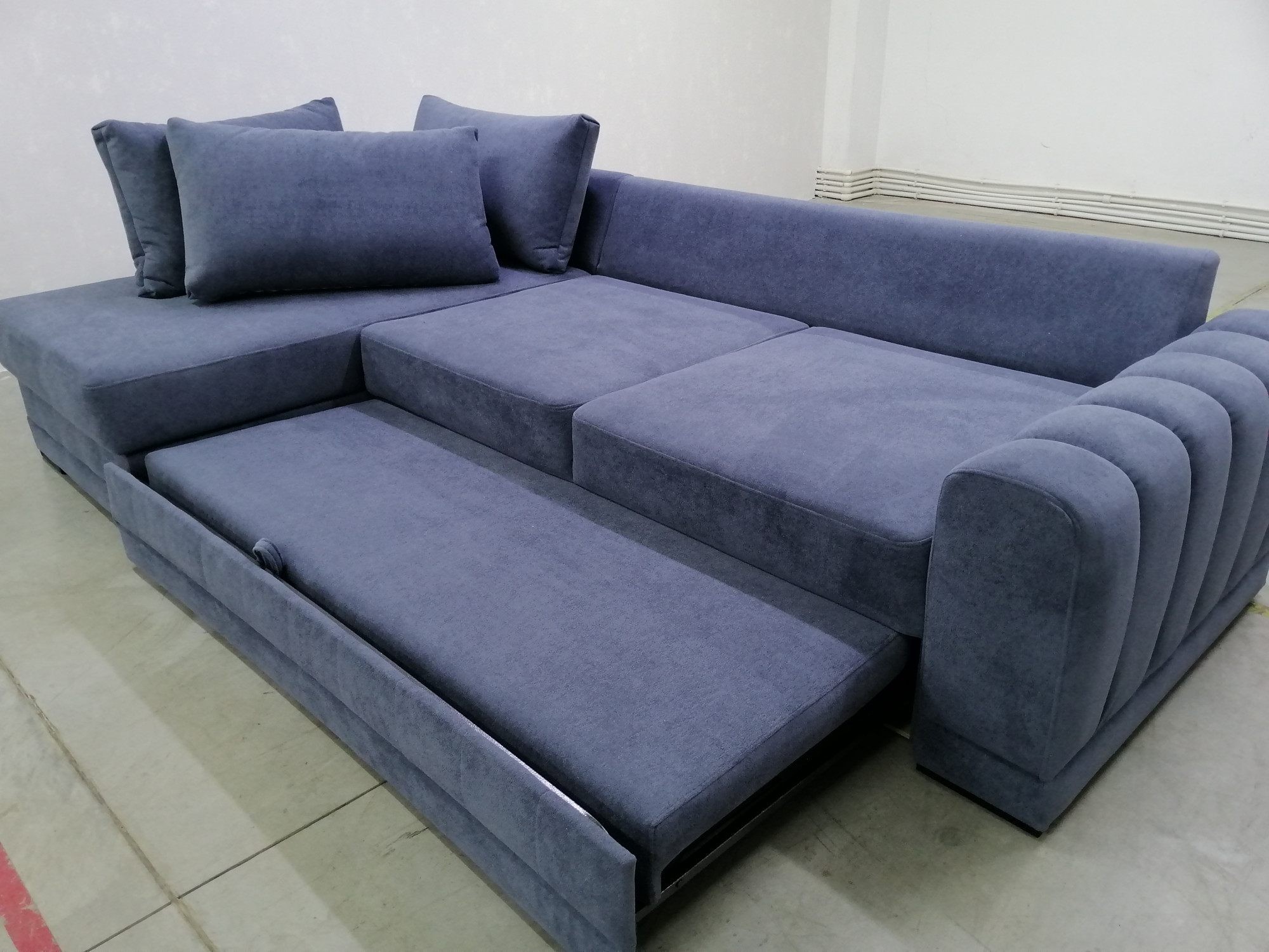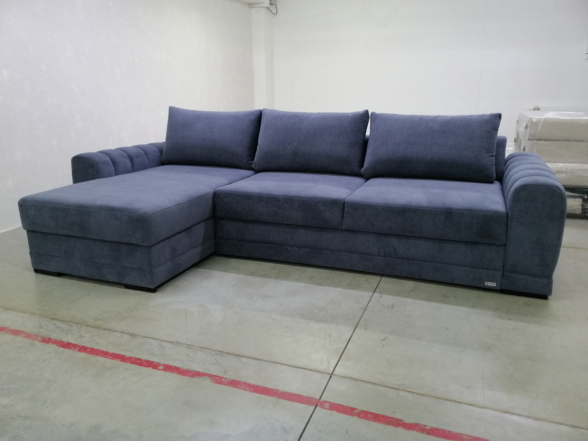 Диван Майбах с оттоманкой металлический каркас пружинный блок синий велюр 320х180