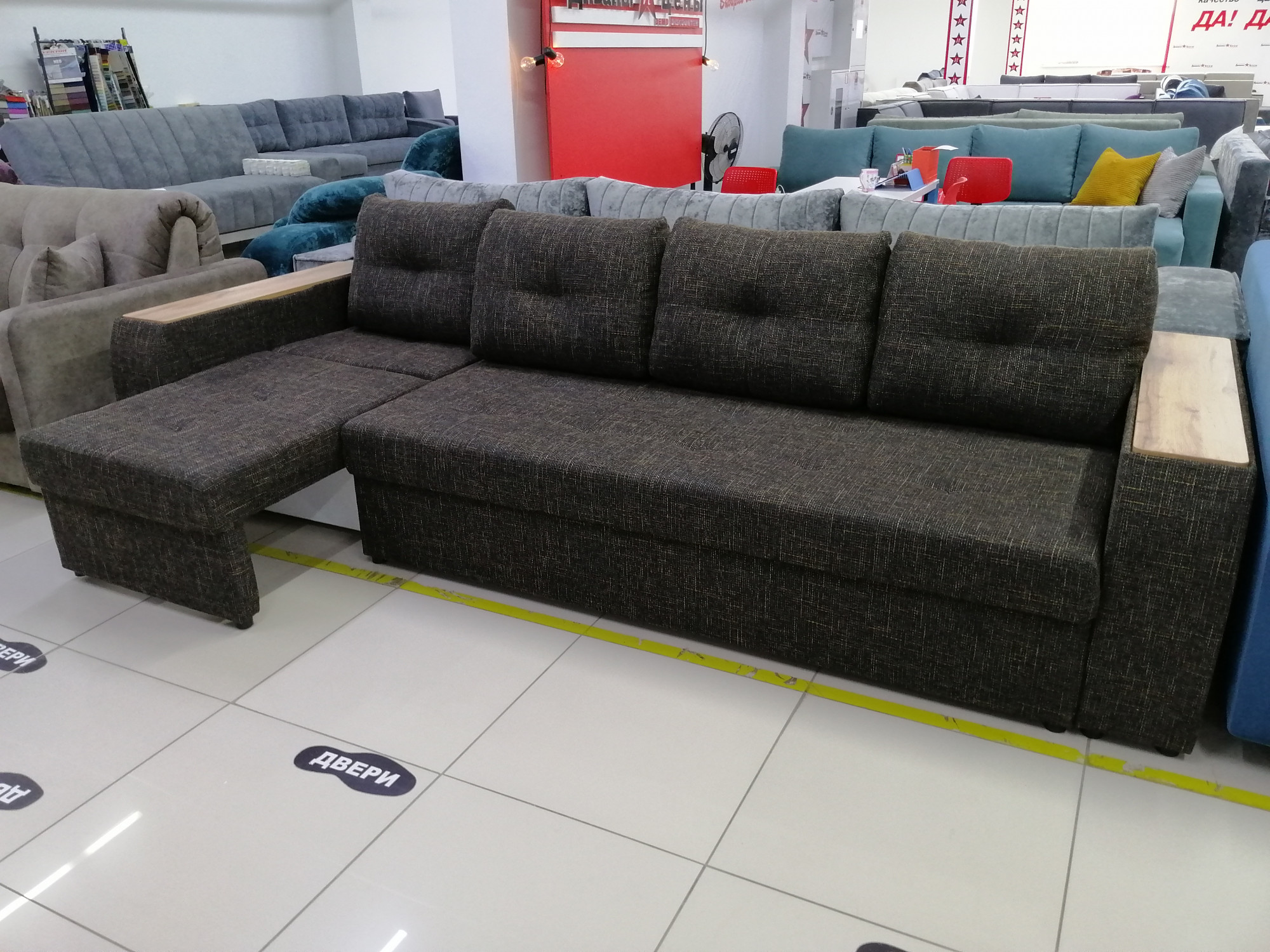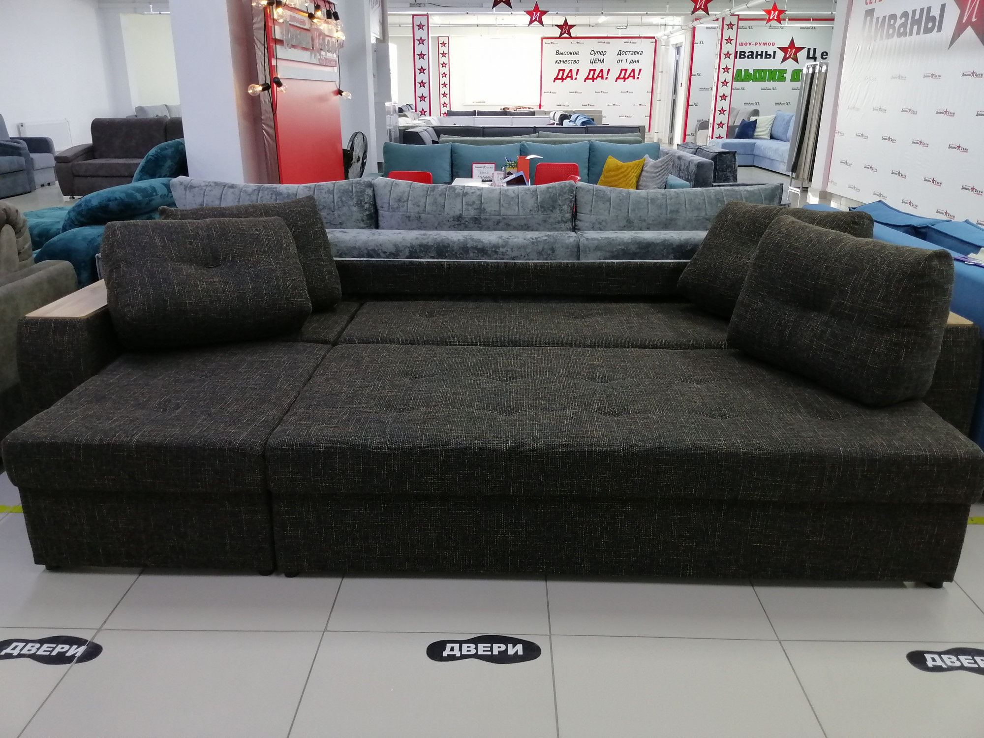 Диван Нова с выкатным модулем подлокотники с накладками открывающиеся коричневый