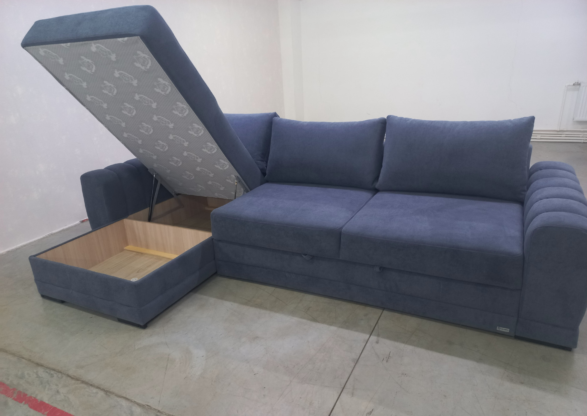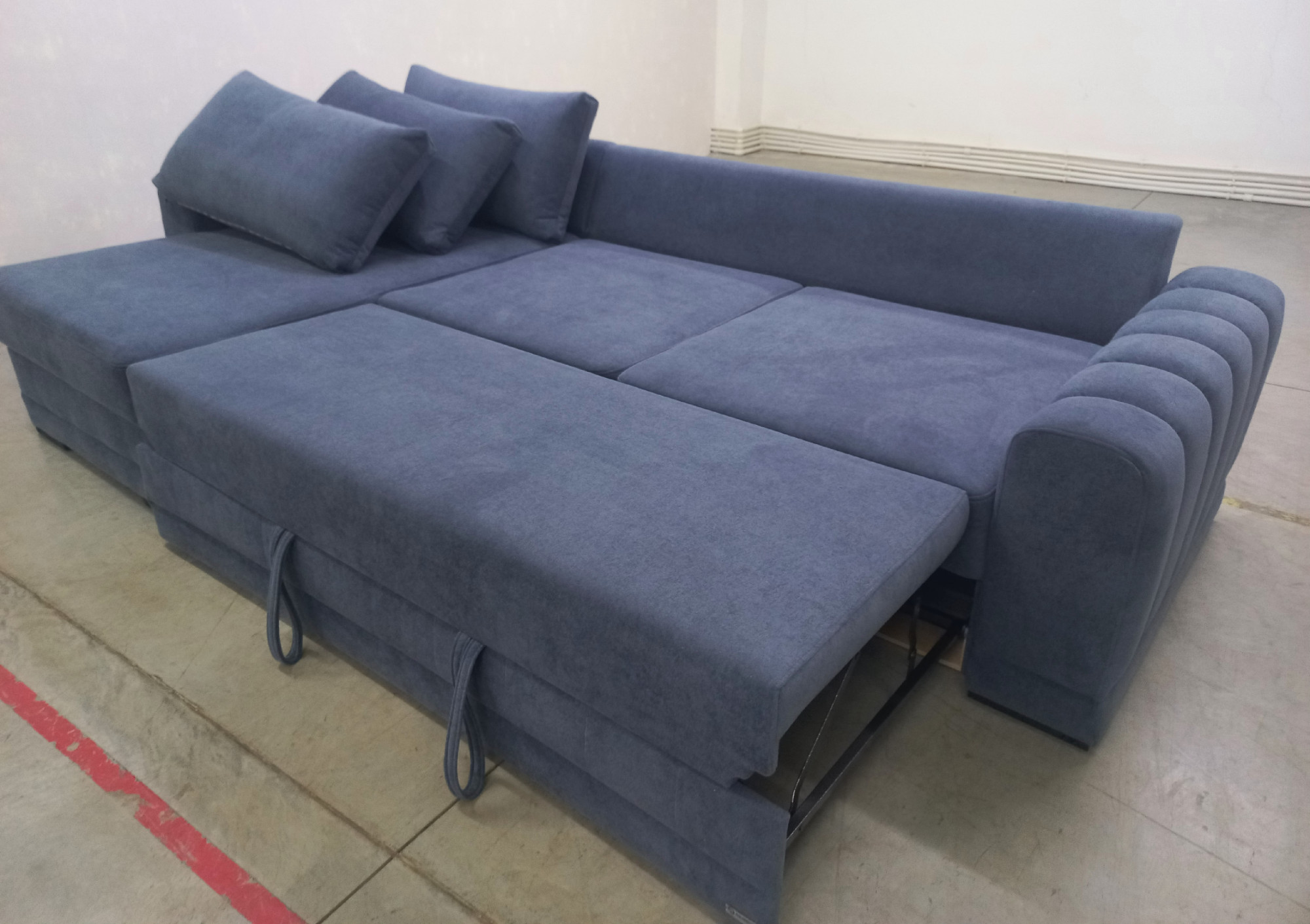 Диван П-образный раскладной ППУ Майбах Синий 320 см.
