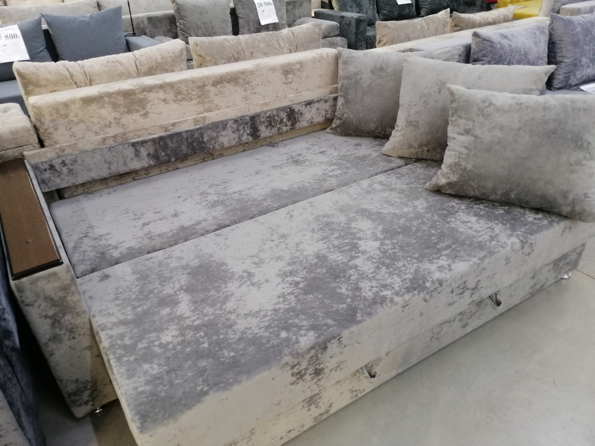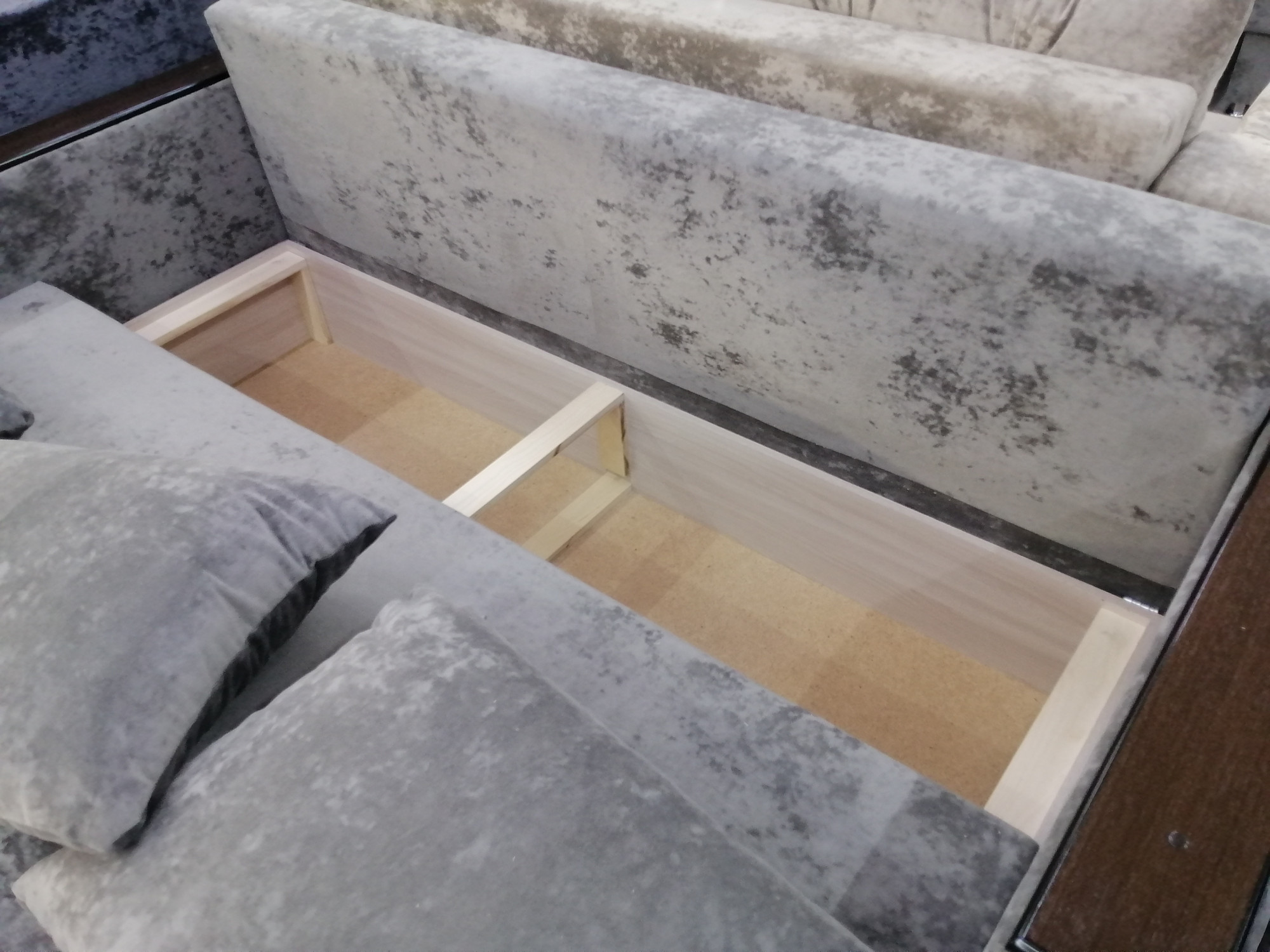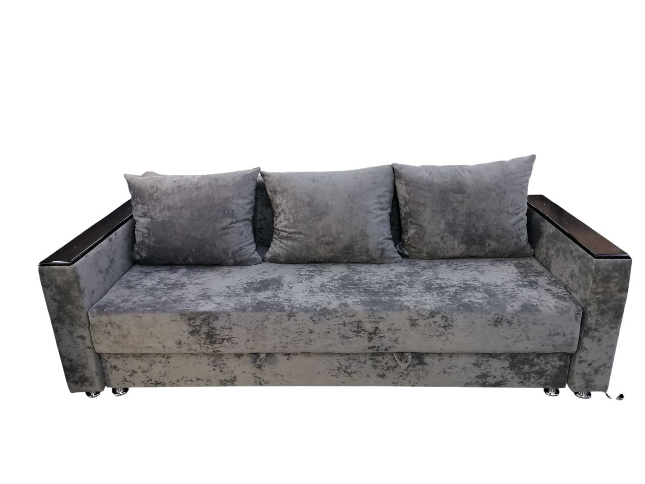 Диван прямой Еврокнижка пенополиуретан серый плюш деревянные подлокотники 220х100