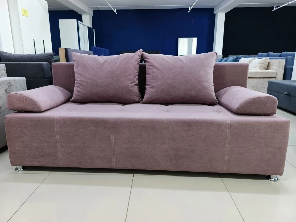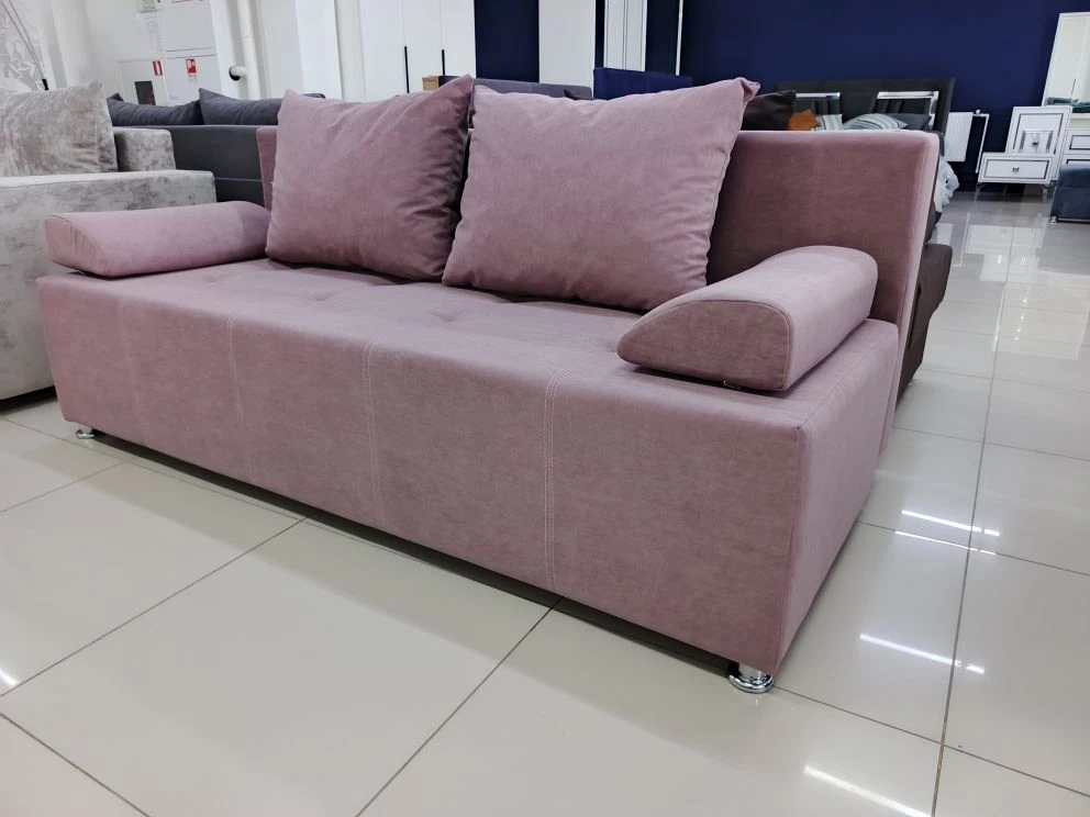Новый диван, компактный безлоктевой вариант.ППУ основание обеспечивает ровную, упругую опору. Механизм еврокнижка- мгновенная раскладка для комфортного сна. Вместительный ящик для белья. Отличный вариант для малогабаритных квартир