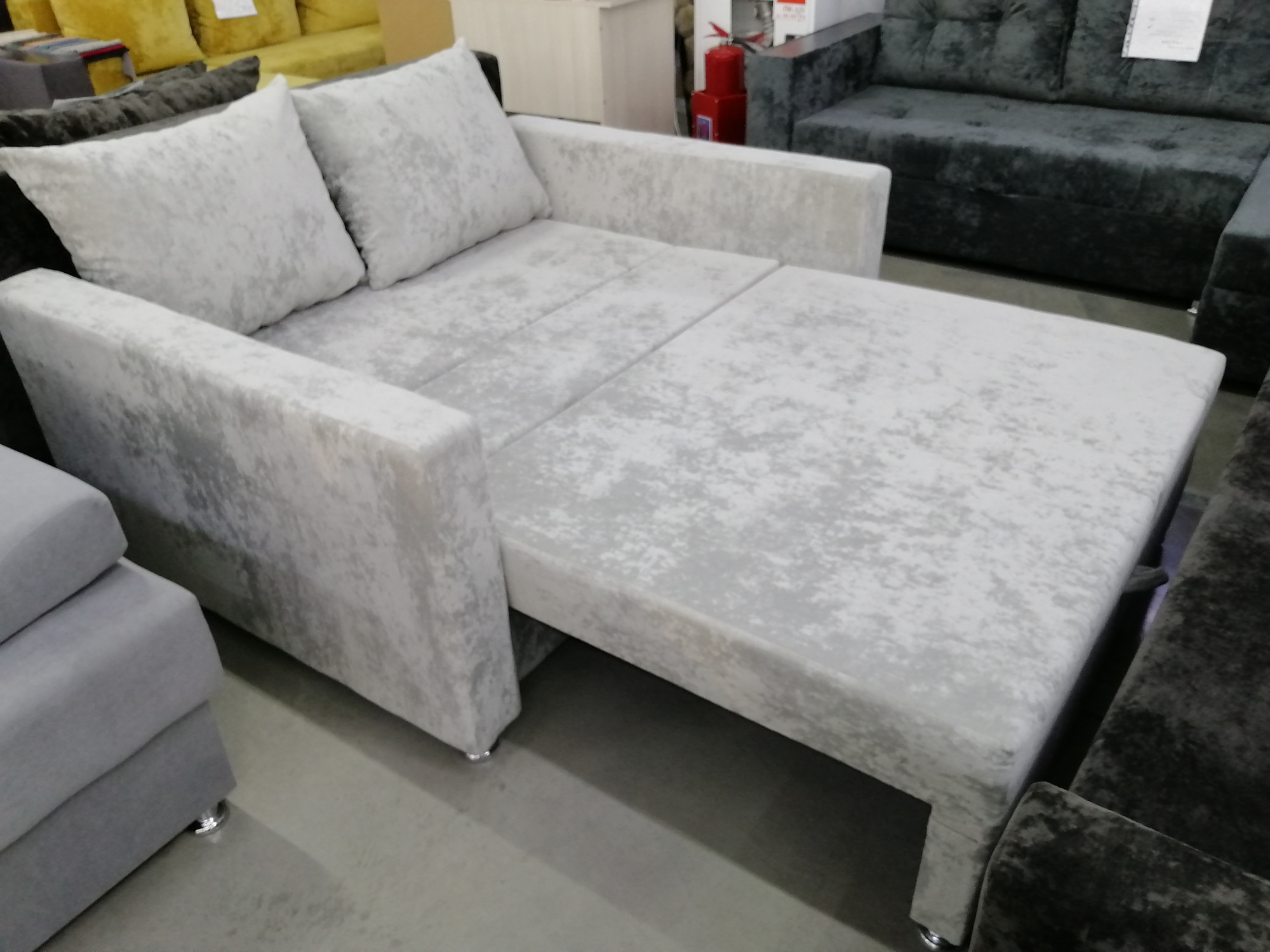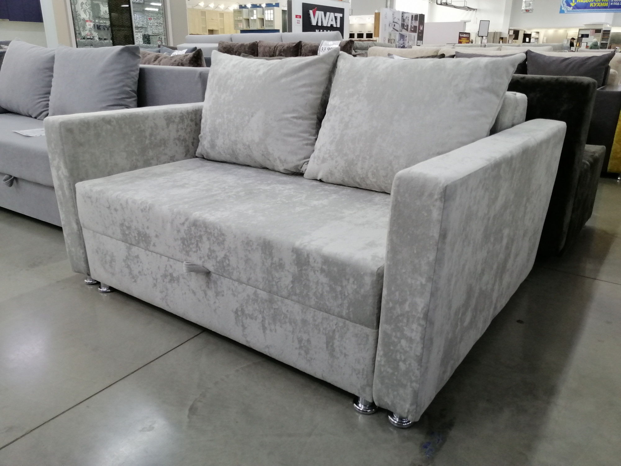 Диван прямой раскладной ППУ Баян светло-серый плюш 125см