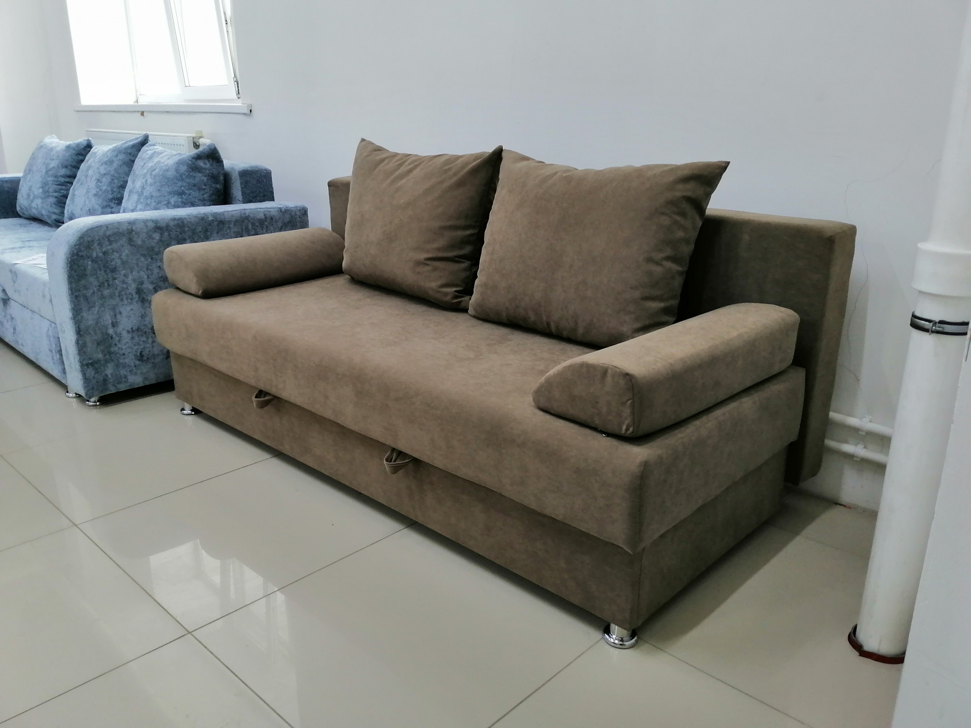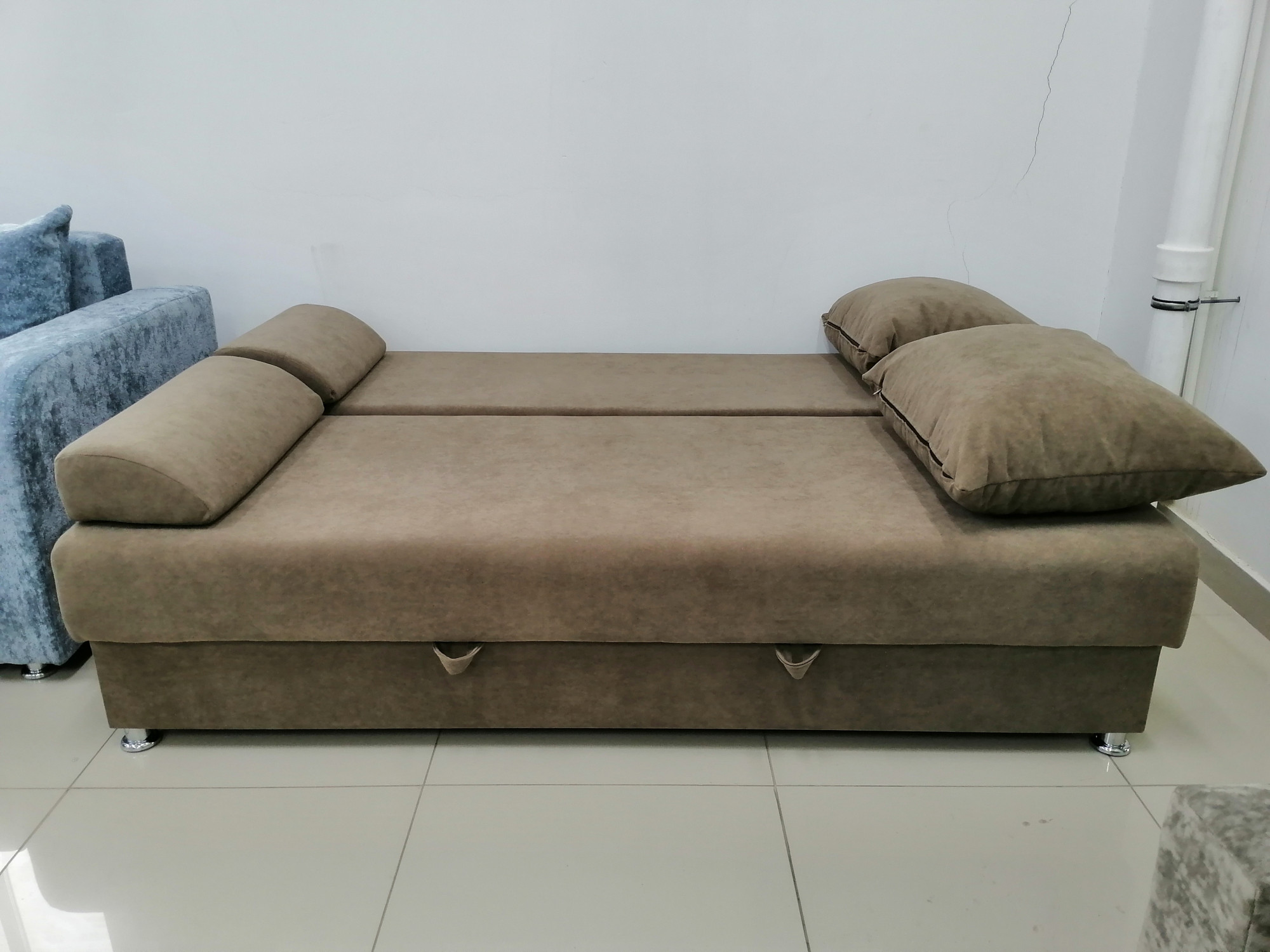 Диван Еврик - компактный безлоктевой диван. ППУ основание обеспечивает ровную, упругую опору, безлокотная конструкция для большего полезного пространства, механизм еврокнижка: мгновенная раскладка для комфортного сна