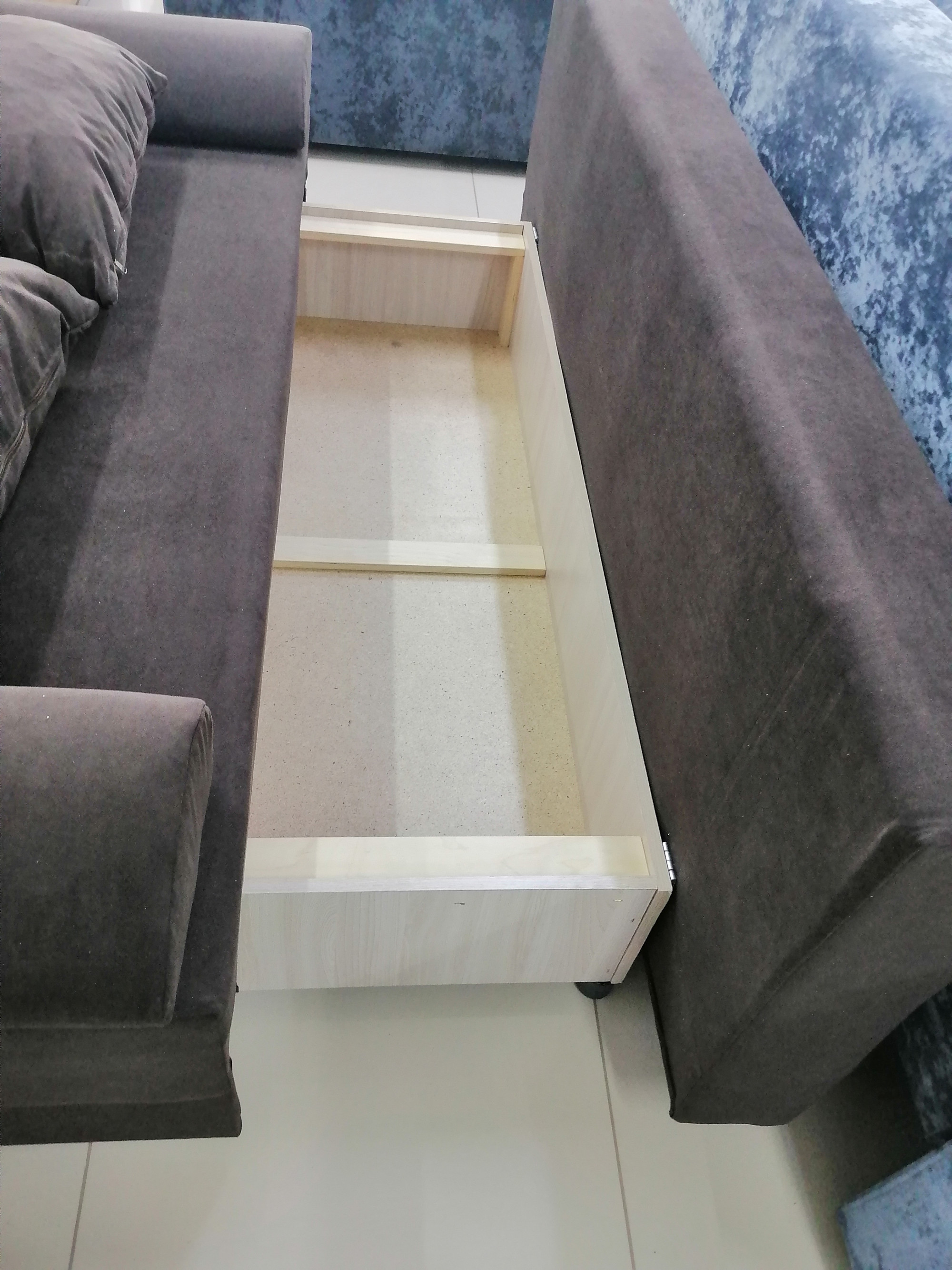 диван Озон компактный безлоктевой вариант.ППУ основание обеспечивает ровную, упругую опору. Механизм еврокнижка- мгновенная раскладка для комфортного сна. Вместительный ящик для белья. Диван можно посмотреть в торговом центре Большой мебельный 7 вход 3 этаж дисконт центр.
