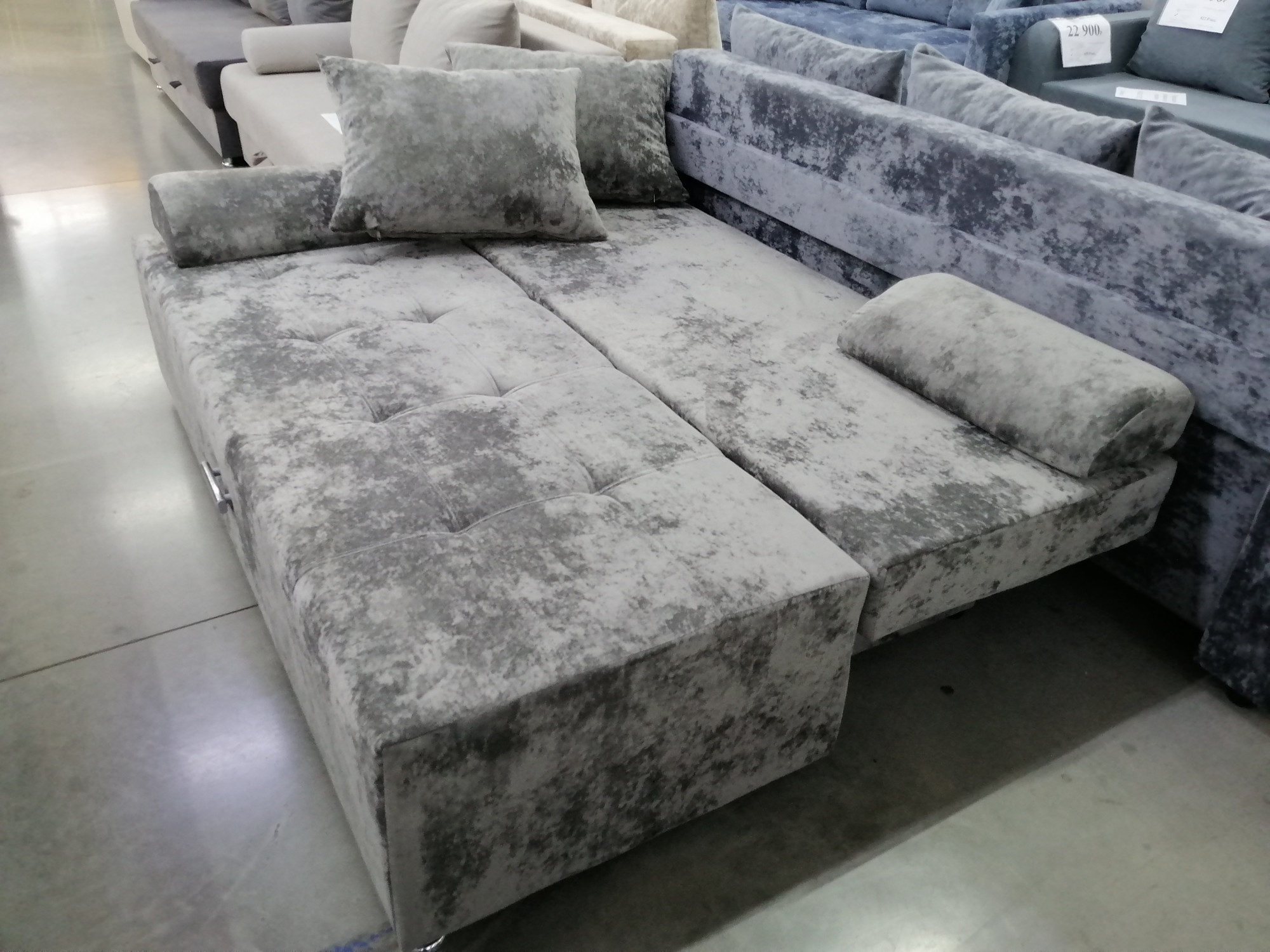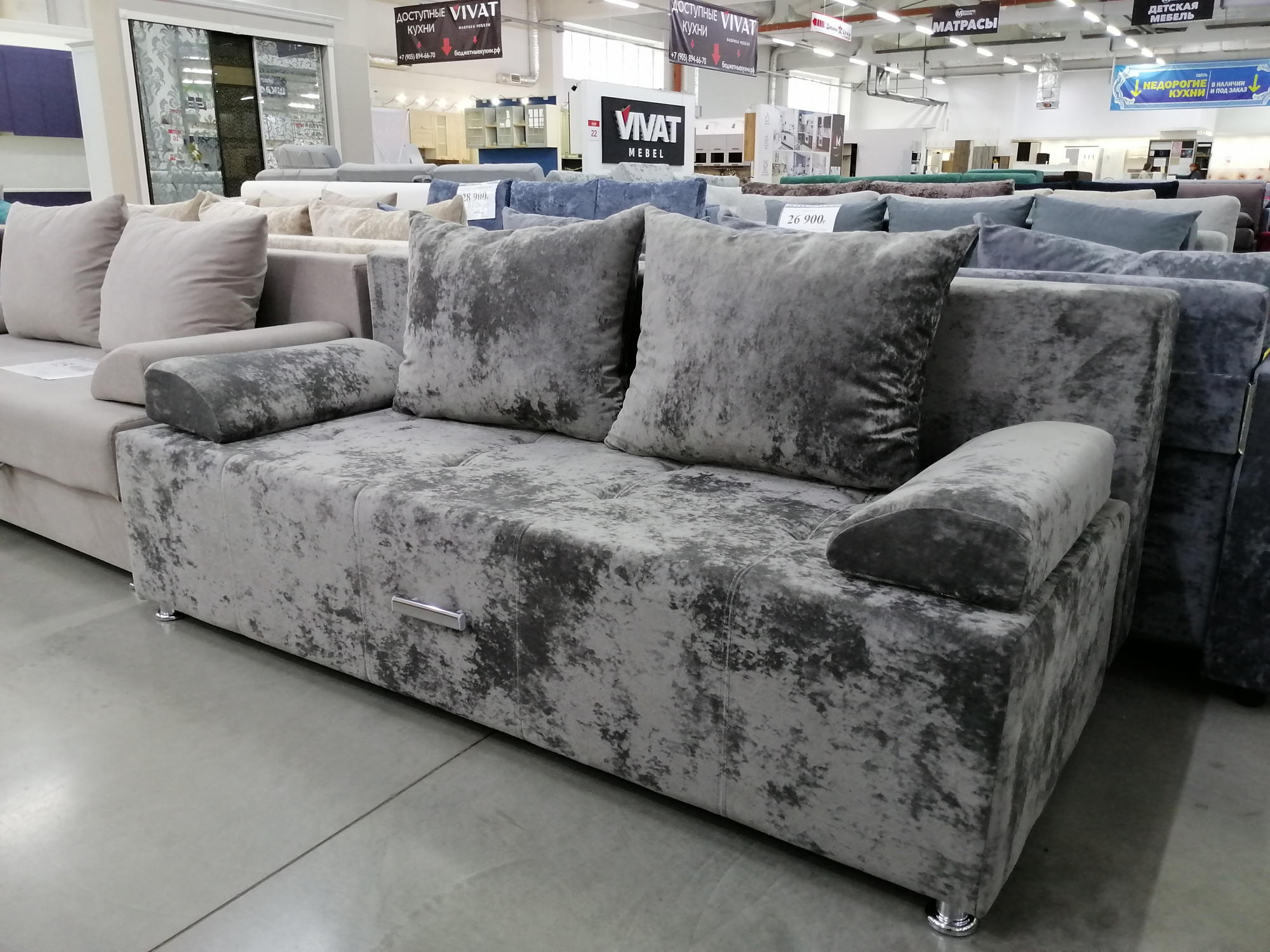 Диван прямой раскладной Валик с утяжкой серый 190х90
