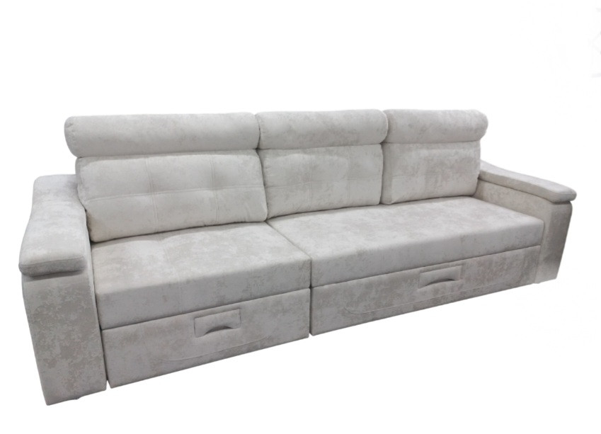 Диван прямой тройной раскладки НПБ Марсель с выкатным модулем молочный плюш 300см