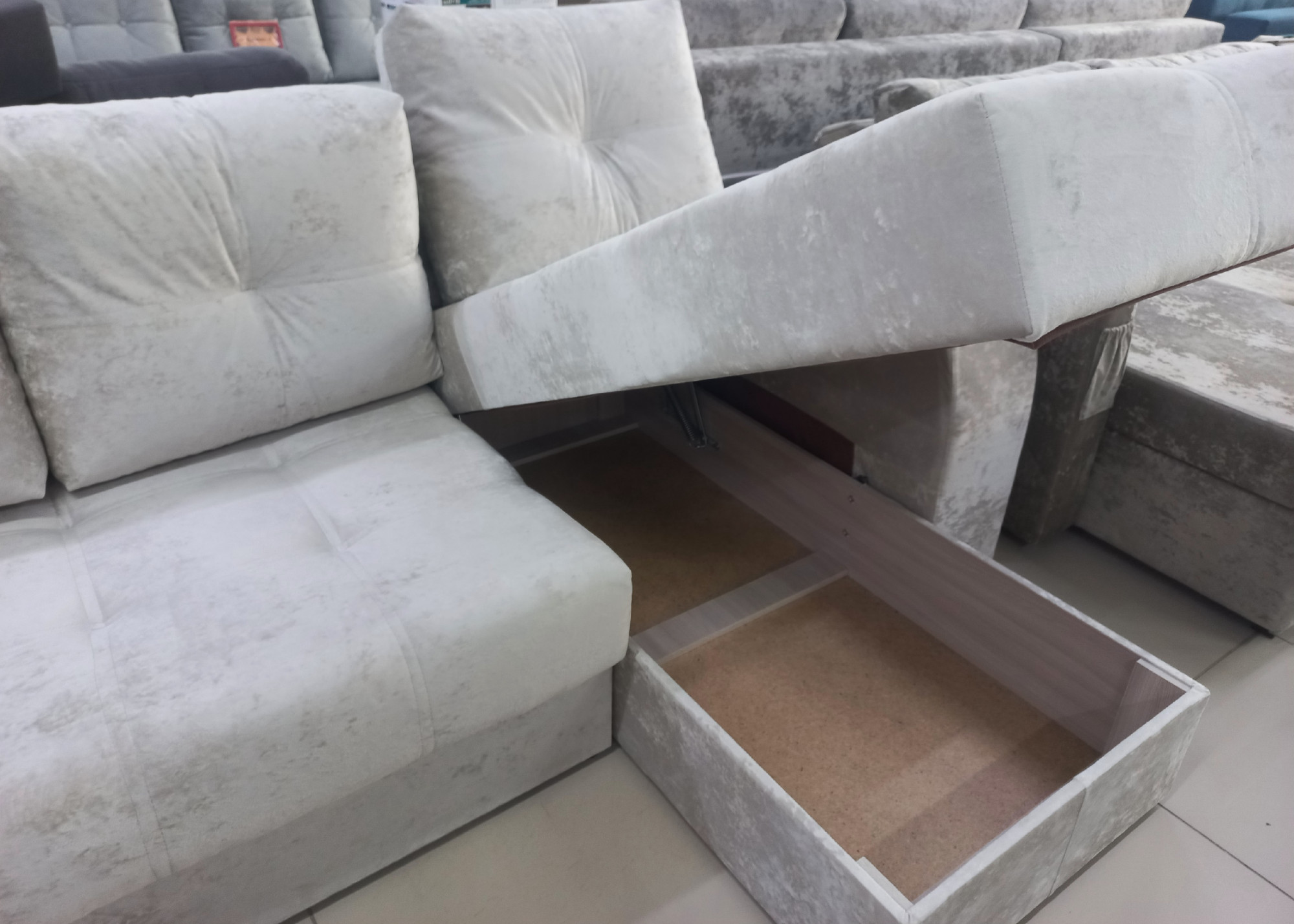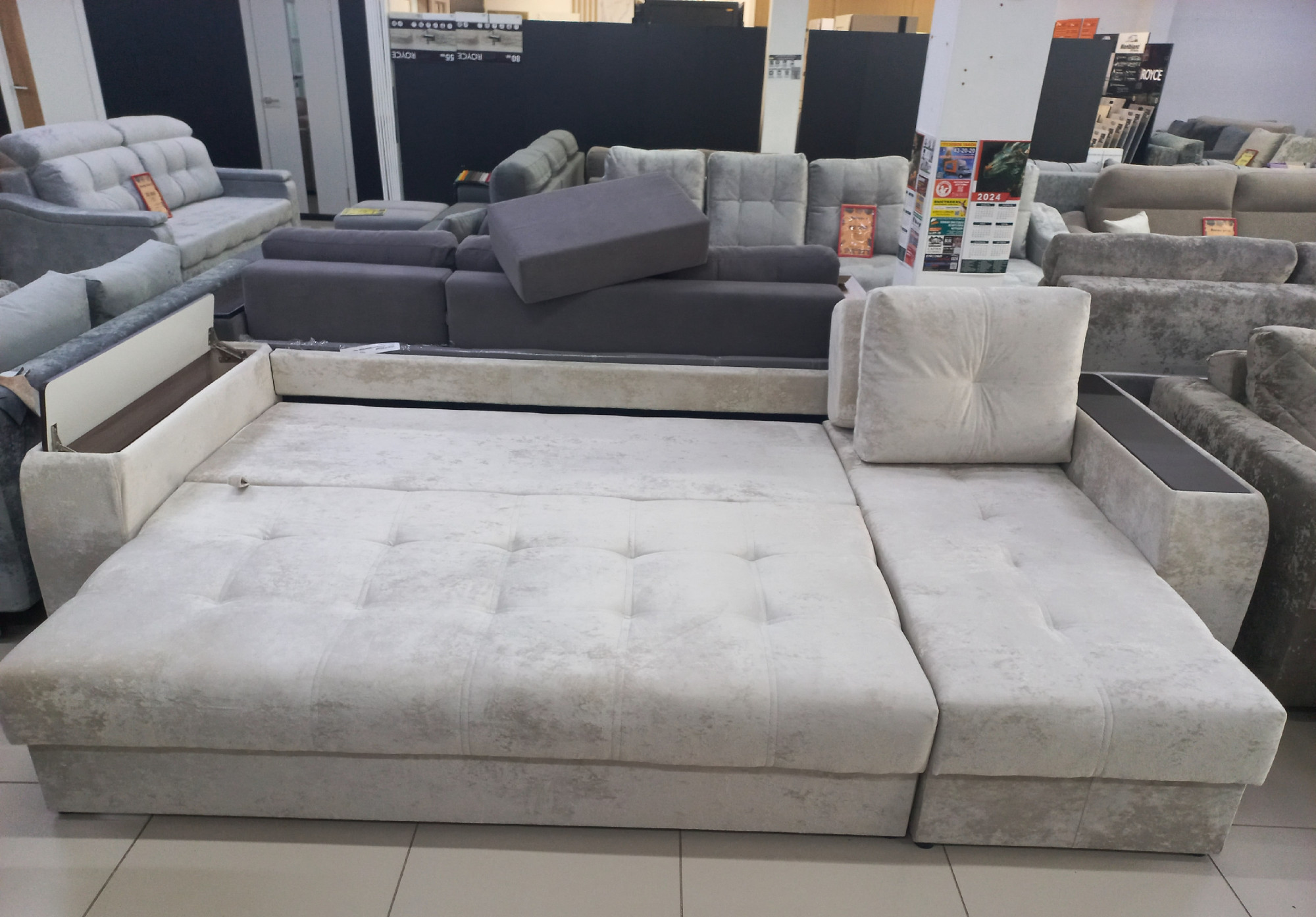 Диван угловой, подлокотники открываются , каркас деревянный, основа ППУ двойной слой, имеется много места для хранения белья. Доставим в день покупки. Товар доступен в рассрочку или кредит.
