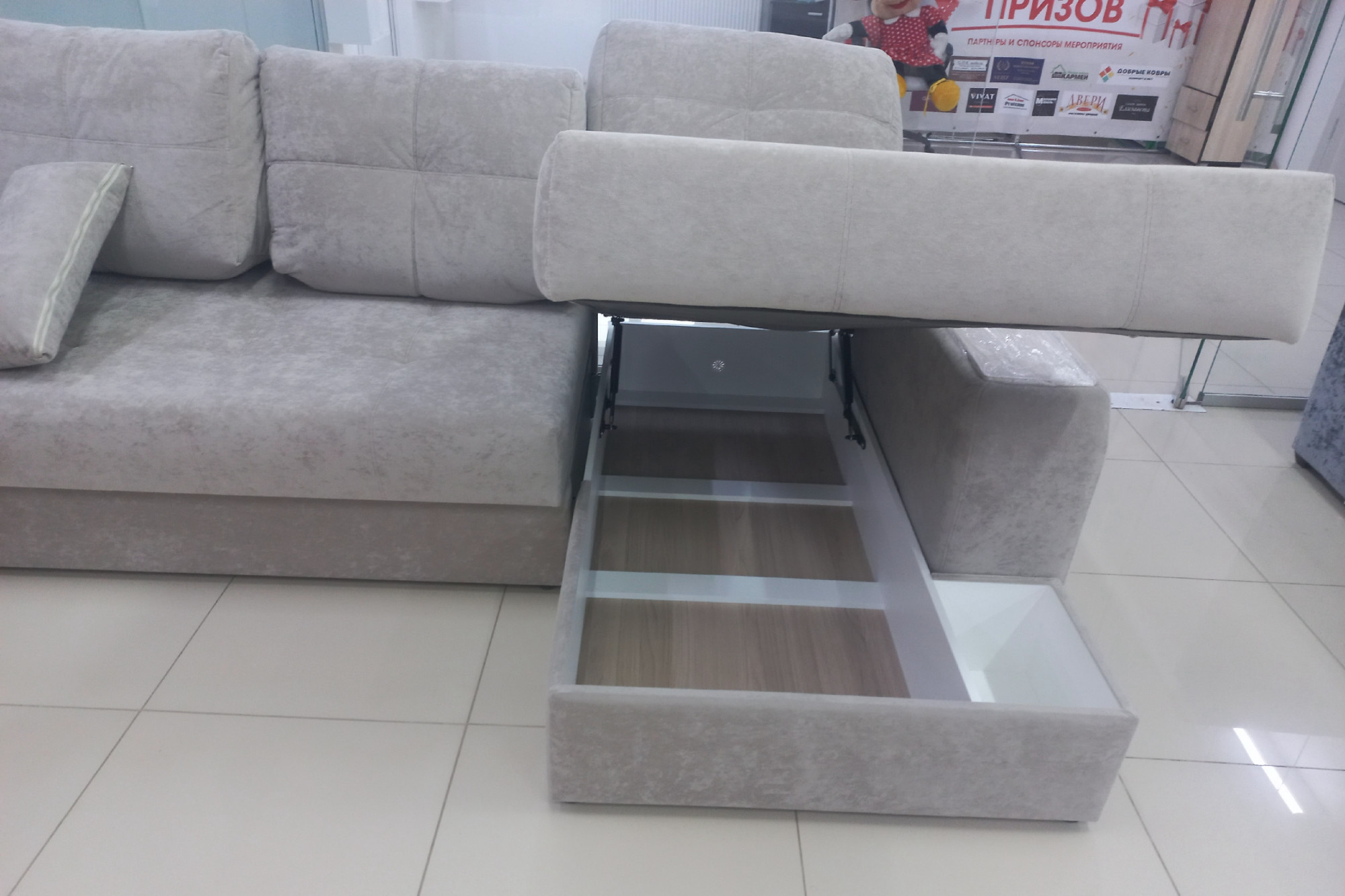 Диван угловой Остин, каркас деревянный, основа ППУ, имеется место для хранения белья. Подлокотники открываются. Диван доступен на заказ.