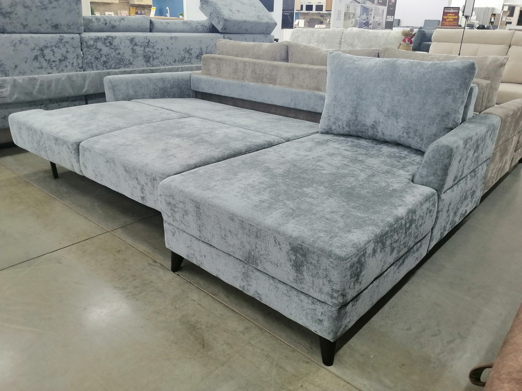 Диван угловой Престиж с интегрированной оттоманкой и механизмом шаговой раскладки на высоких ножках: Стильный минимализм, элегантная комбинация комфорта и функциональности ,комфортная ортопедическая основа из пенополеуретана высокой плотности обеспечит полноценный отдых, удобство хранения под посадочным местом, шенилл обивка дарит мягкость, а детали -характер