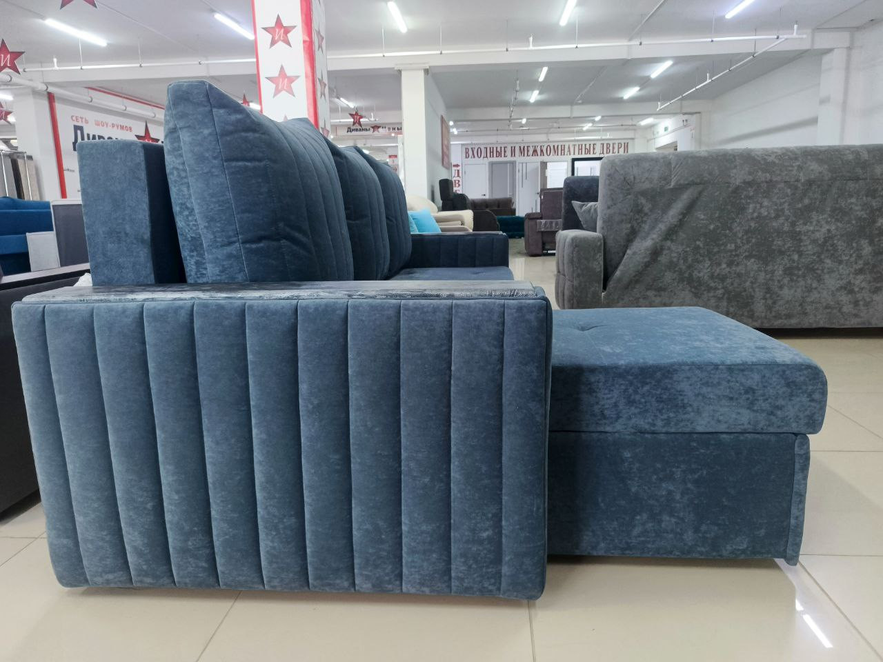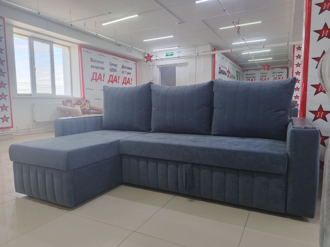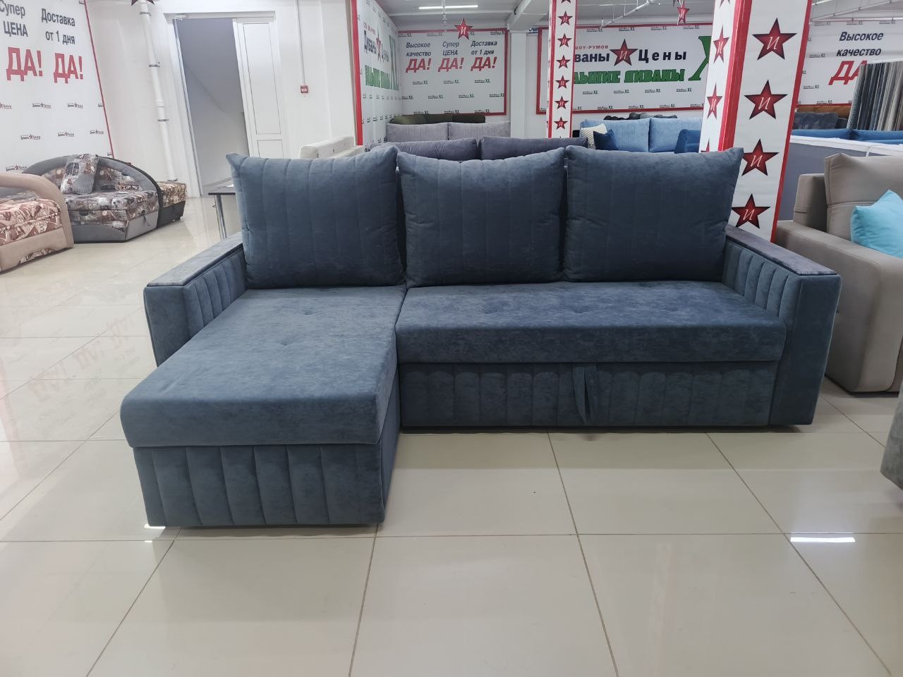 Диван угловой раскладной Гермес-1 синий 160х145