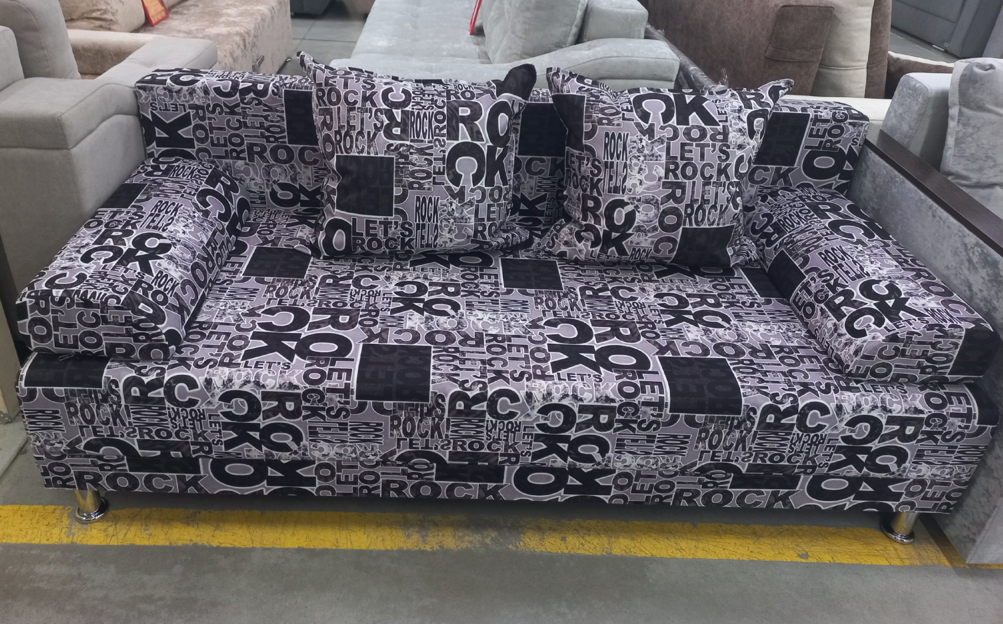 Диван в детскую прямой раскладной ППУ Озон с принтом буквы серого цвета 190 см