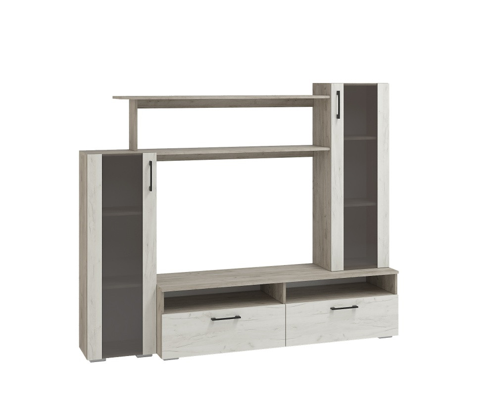 Гостиная Эмма Мини дуб Крафт белый серый 190х42х158