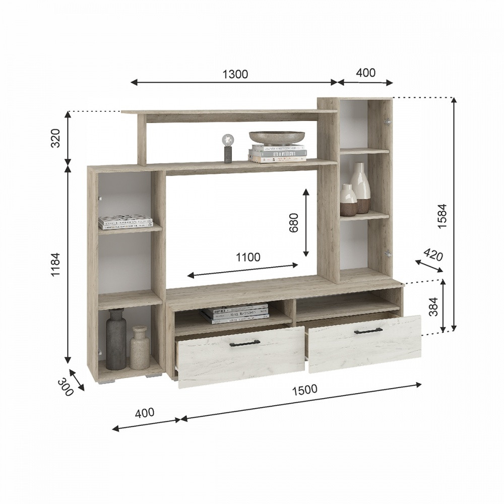 - Ниша под ТВ: 1100х680 мм для моделей телевизоров с диагональю до 43"