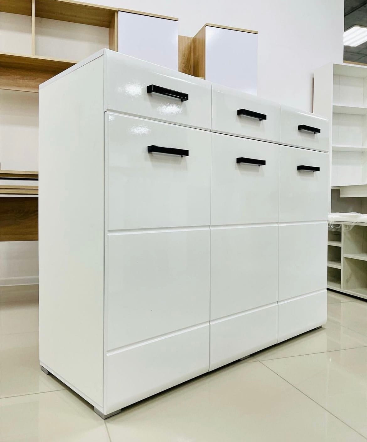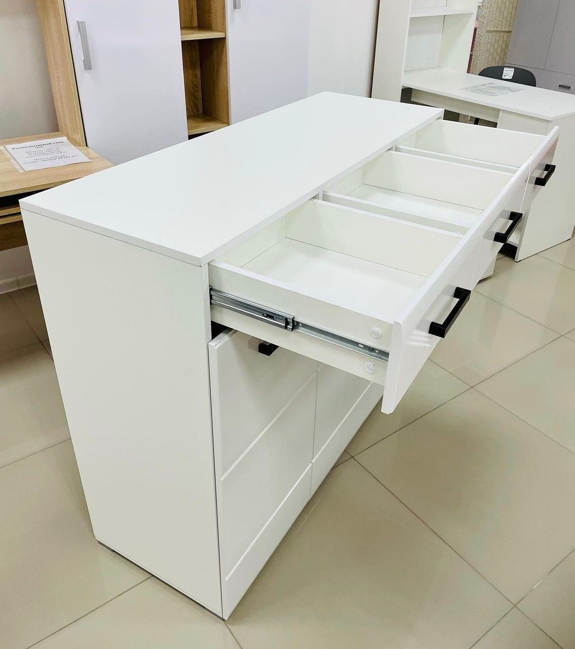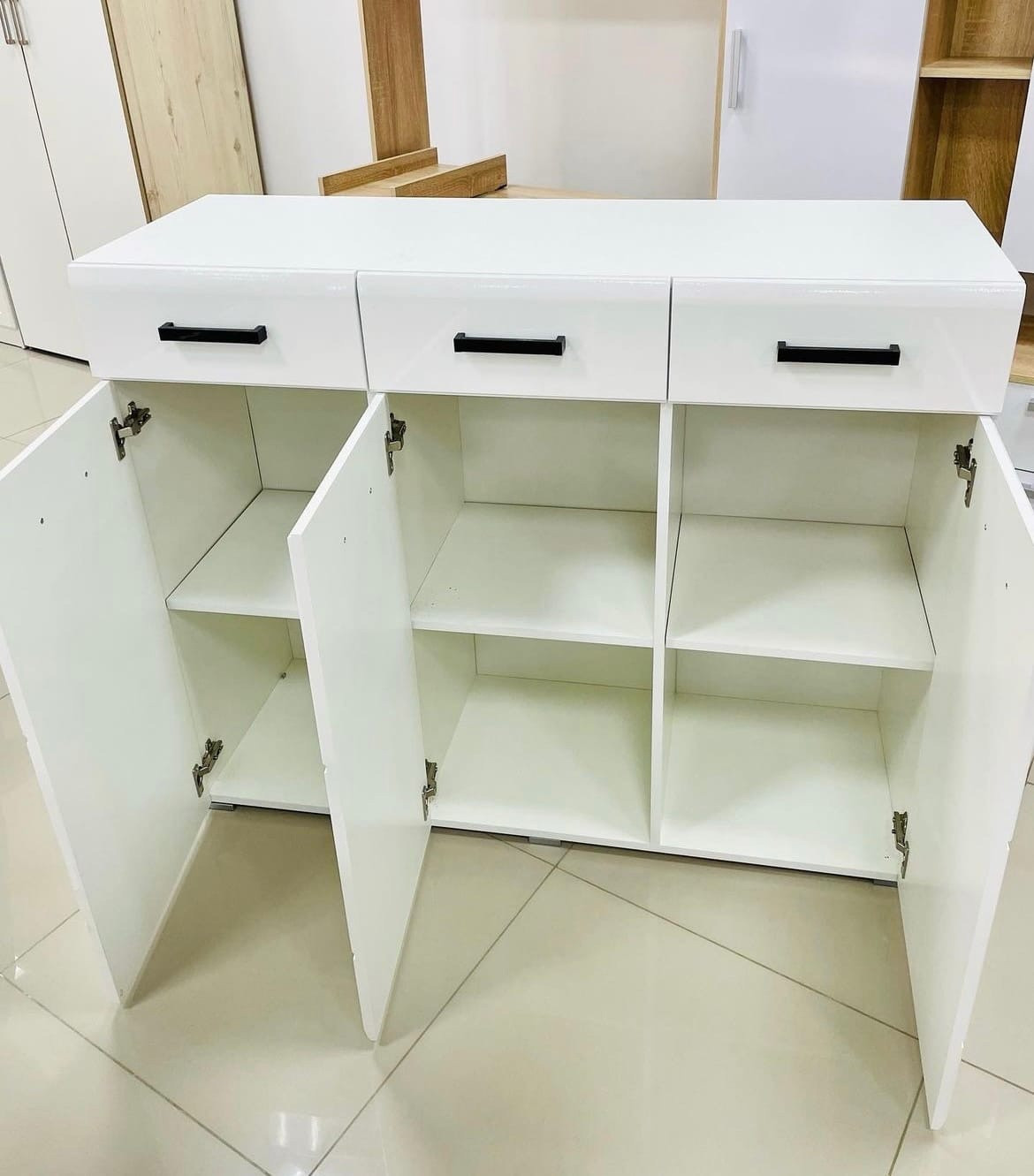 Комод 3 ящика и полки Нэнси нью белый глянец 120х44х98
