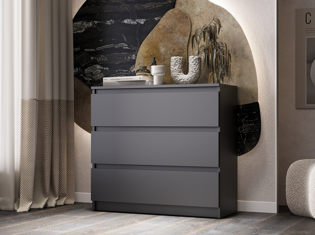 Современный комод в стиле лофт с тремя вместительными ящиками органично впишется в спальню, гостиную или прихожую. Лаконичный дизайн и сдержанный графитовый оттенок подчеркнут урбанистический характер пространства, не перегружая его.