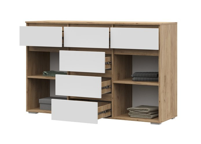Комод 6 ящиков Хелен КМ 05 Белый / Дуб Крафт Золотой 150х46х96