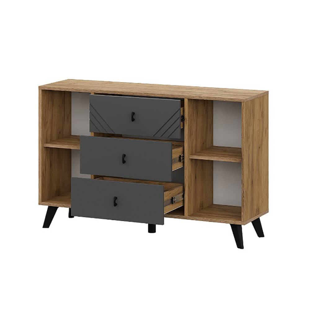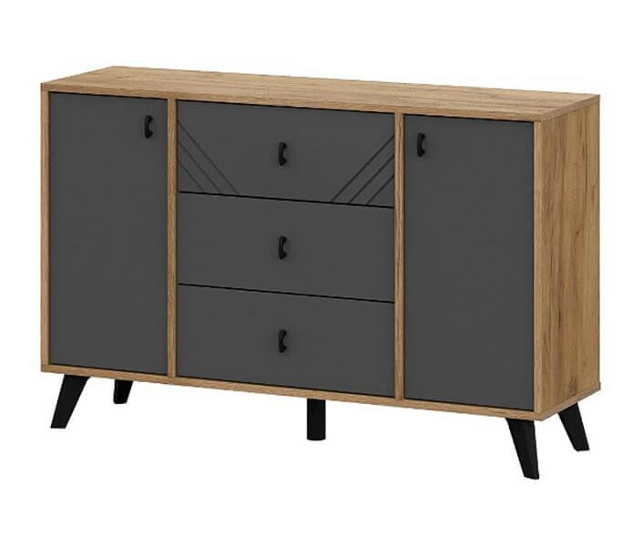 Комод Байкал 3 ящика двухстворчатый Дуб Золотой/Графит 114х73х33