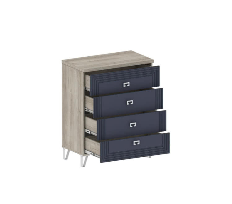 Комод четыре ящика Лежер КМ 3102 синий/дуб серый 84х47х107 см