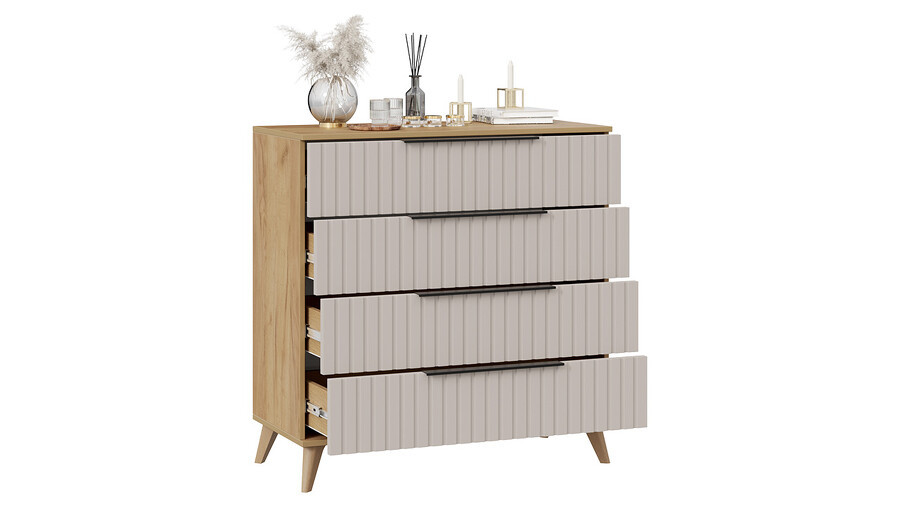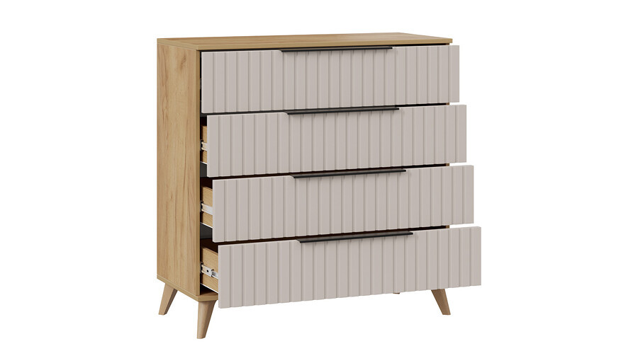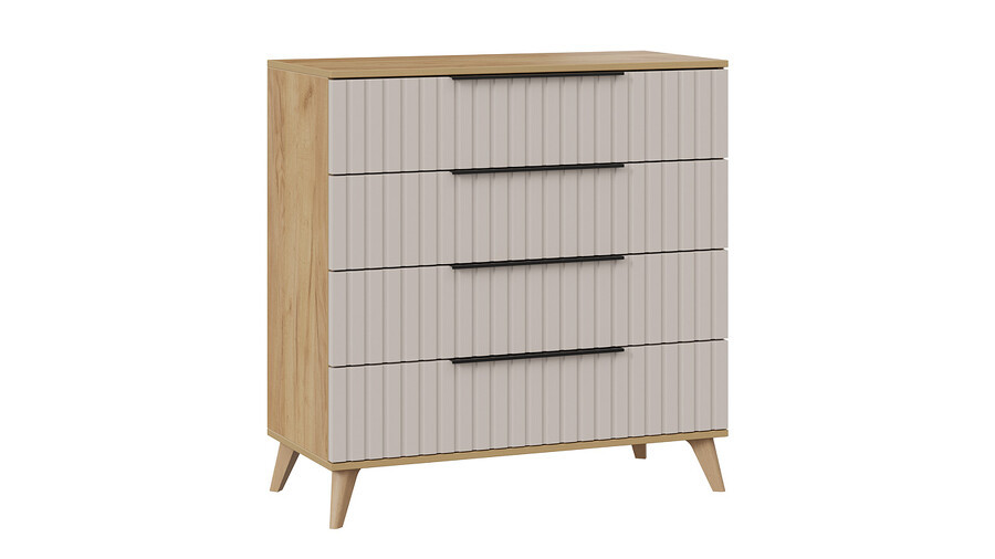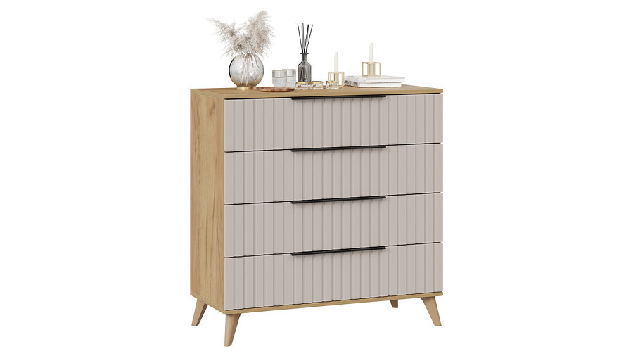 Комод Хилтон с опорами Бук матовый, Дуб Крафт золотой, Мокко матовый