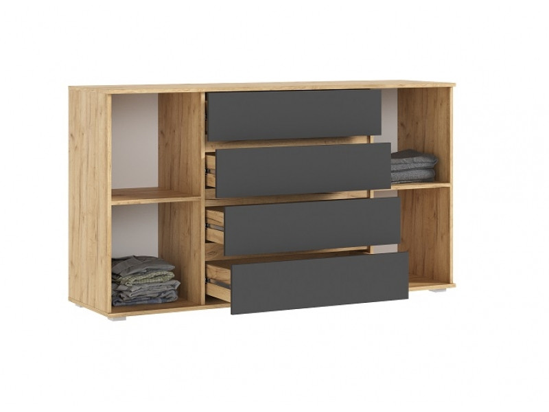 Комод Марвэл дуб крафт/браш графит 160х45х90