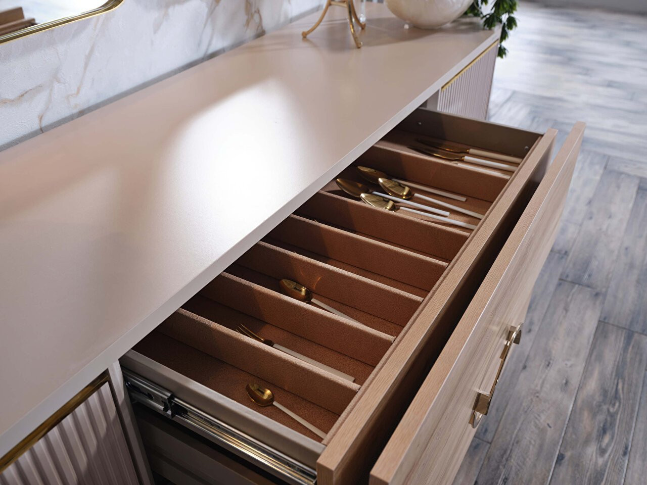 С плавными, закругленными линиями Санвито имеет отделение для столовых приборов в верхнем ящике.