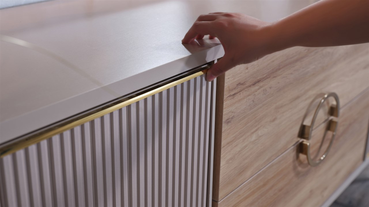 Бежевая гостиная Sanvito (Санвито) от турецкой фабрики Bellona — идеальный выбор для тех, кто ценит комфорт и стиль. Эта современная гостиная выполнена из экологичных материалов европейского качества, что гарантирует безопасность и долговечность изделия. Сочетание бежевого цвета с натуральными деревянными элементами и вертикальными фрезерованными фасадами создаёт уютную атмосферу, делая гостиную центром притяжения для всей семьи. Эксклюзивные ножки и система открывания push-to-open обеспечивают удобство использования, а возможность собрать свой комплект позволяет учесть индивидуальные предпочтения и особенности интерьера.