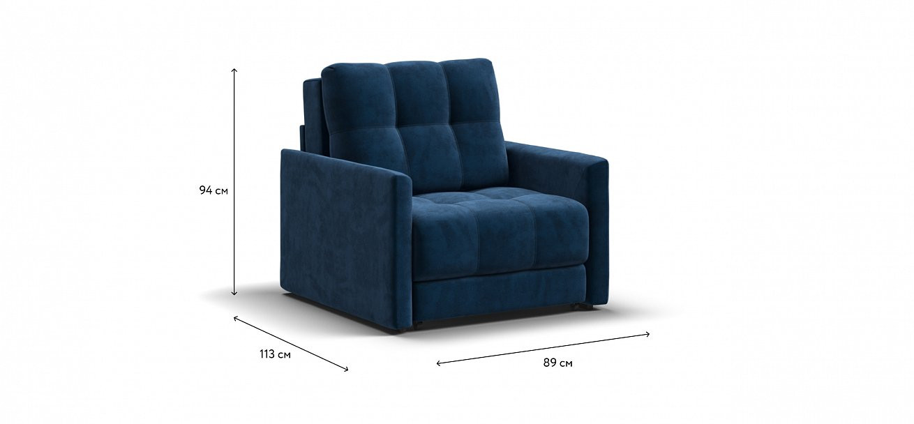 Кресло-кровать раскладной Босс Лофт велюр Moнолит синий 89см