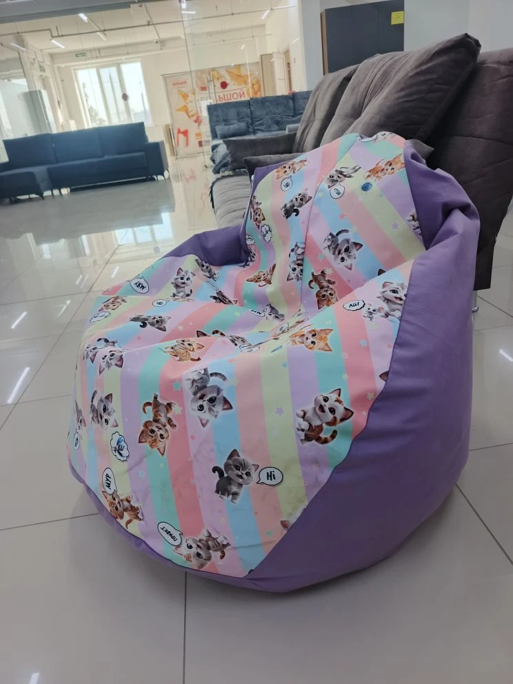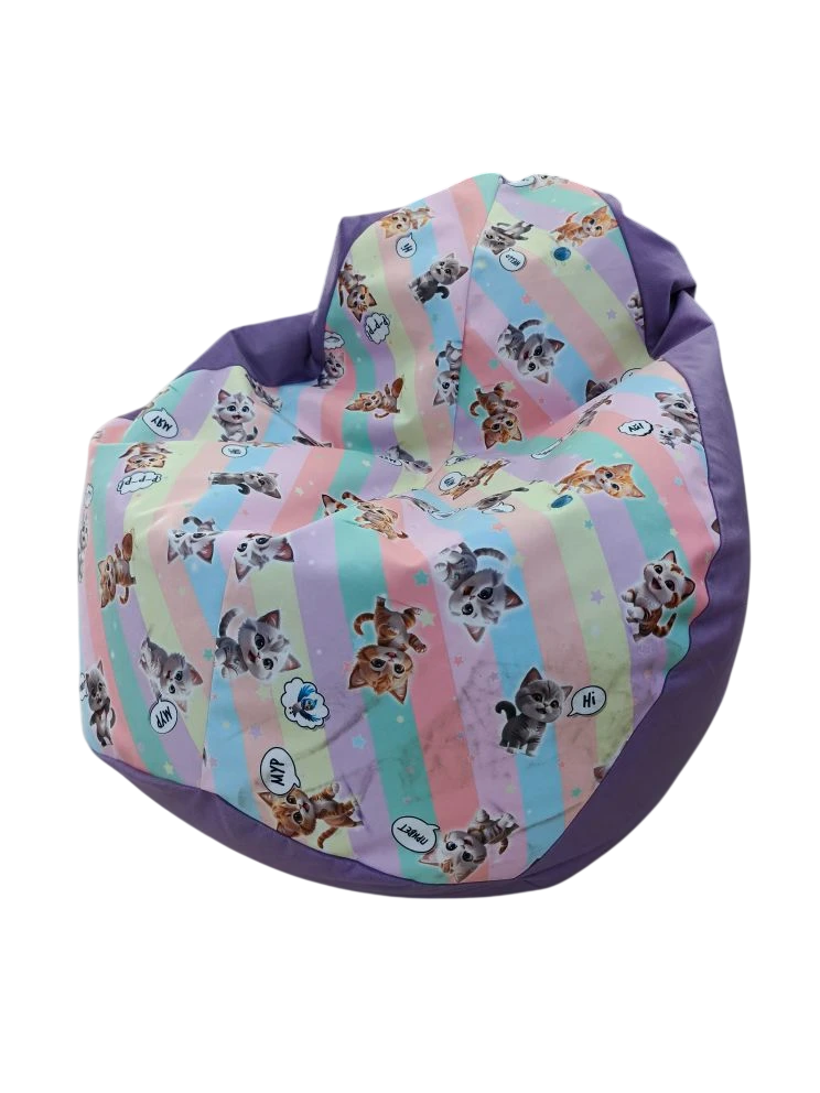 Кресло-мешок груша фиолетовый принт котята