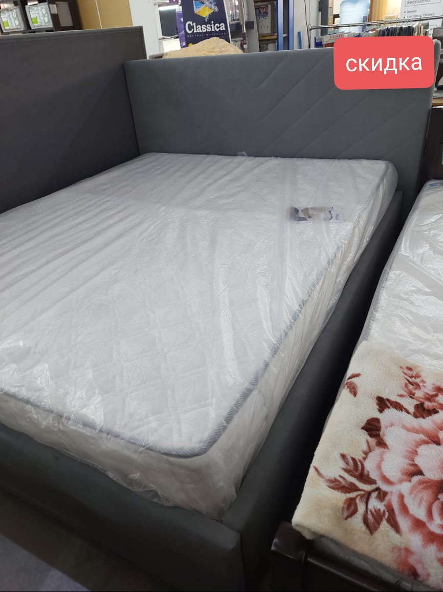 КРОВАТЬ двухспальная Адела велюр серый 160Х200