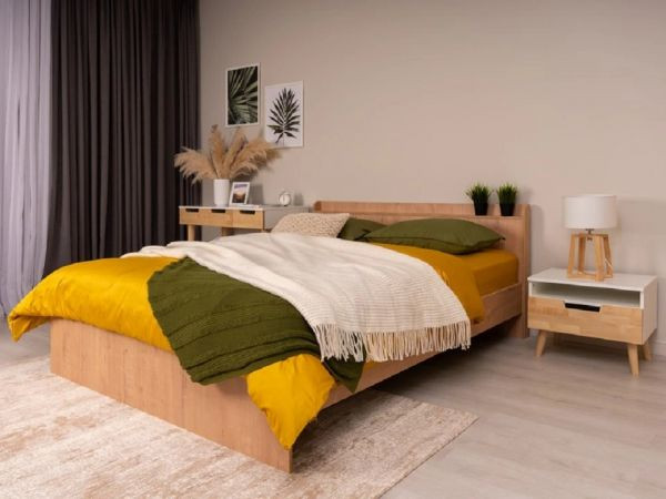 Простые минималистичные формы модели подойдут под любой интерьер. В изголовье предусмотрена удобная полка. Преимуществом ЛДСП является отсутствие разноотеночности — текстура и рисунок всегда в одном цвете — можно позднее докупить мебель в комплект кровати.