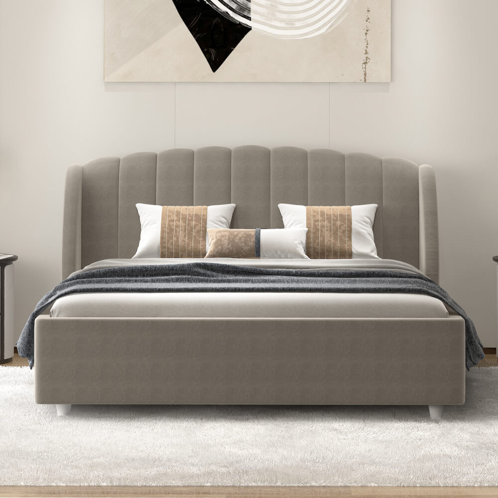 Кровать двуспальная Дженифер-1 бежевый велюр 160х200