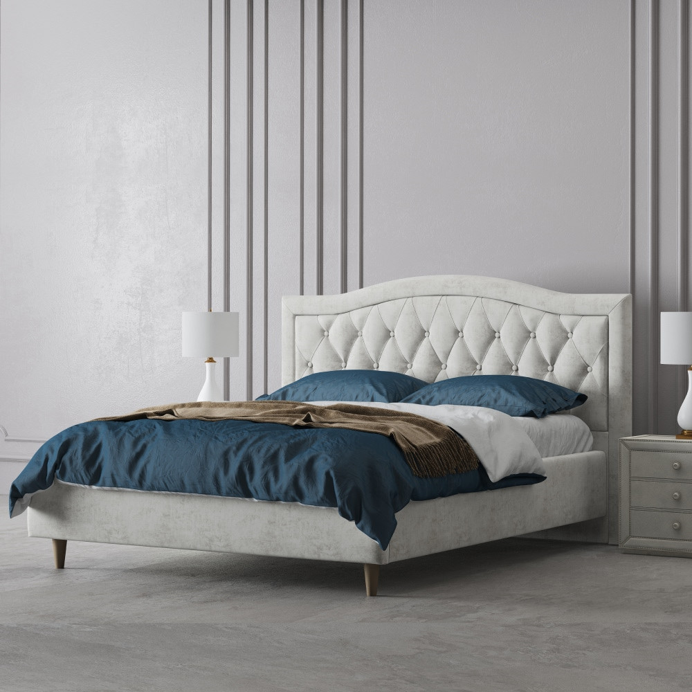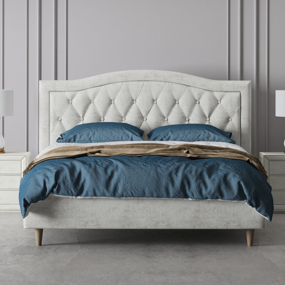 Кровать двуспальная Каролина-2 велюр белый 160х200