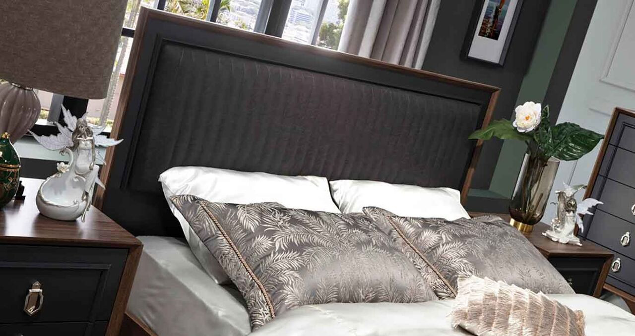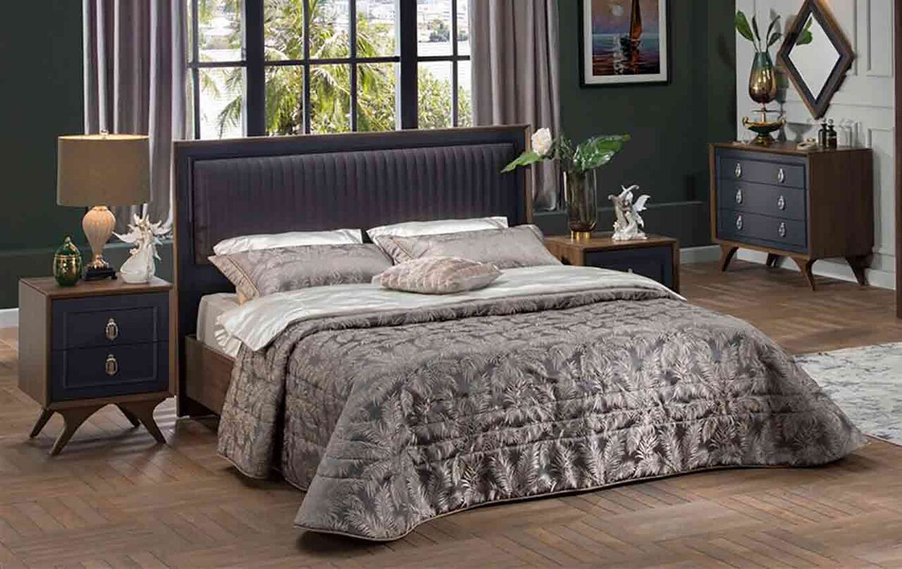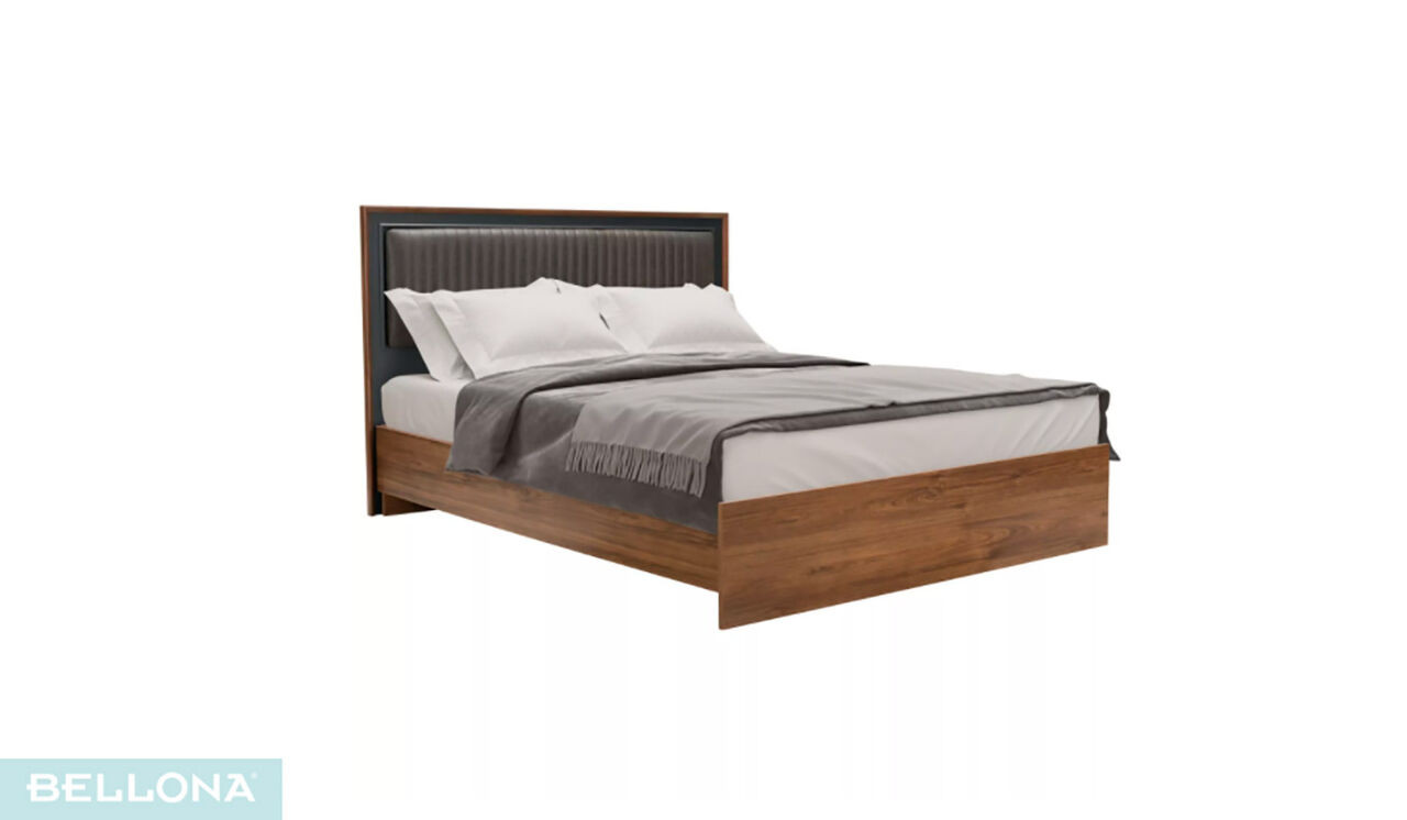 Кровать двуспальная с мягким изголовьем без ПМ Алегро Беллона синий/орех 180х200