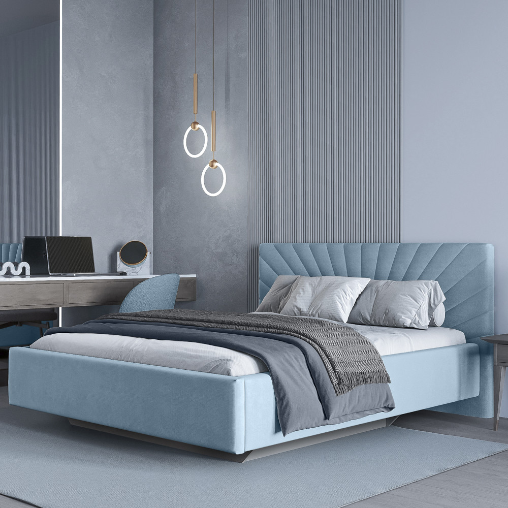 Кровать двуспальная с ПМ и ящиком Миранда-2 голубой велюр 160х200