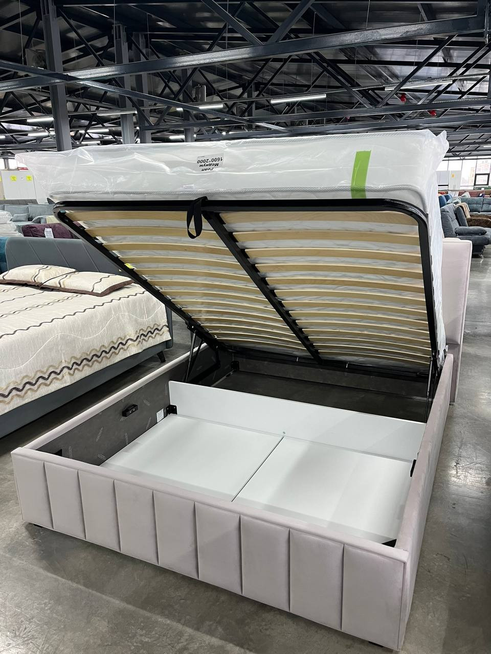Интерьерная кровать из серии Кордова с подъемным механизмом и цельносварным ортопедическим основанием, а также настилом из ЛДСП для бельевого отсека.