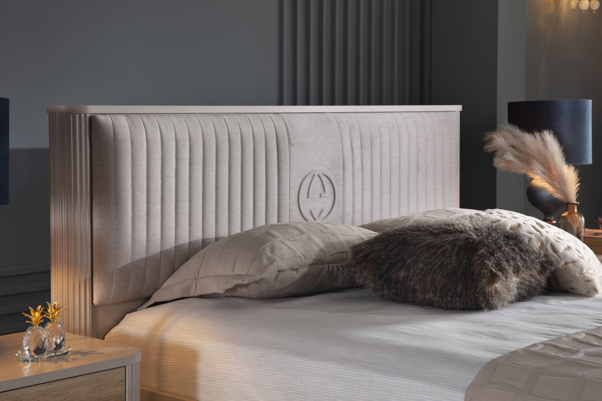 Современное и лаконичное сочетание кремового цвета изголовья с рамой в отделке крем
