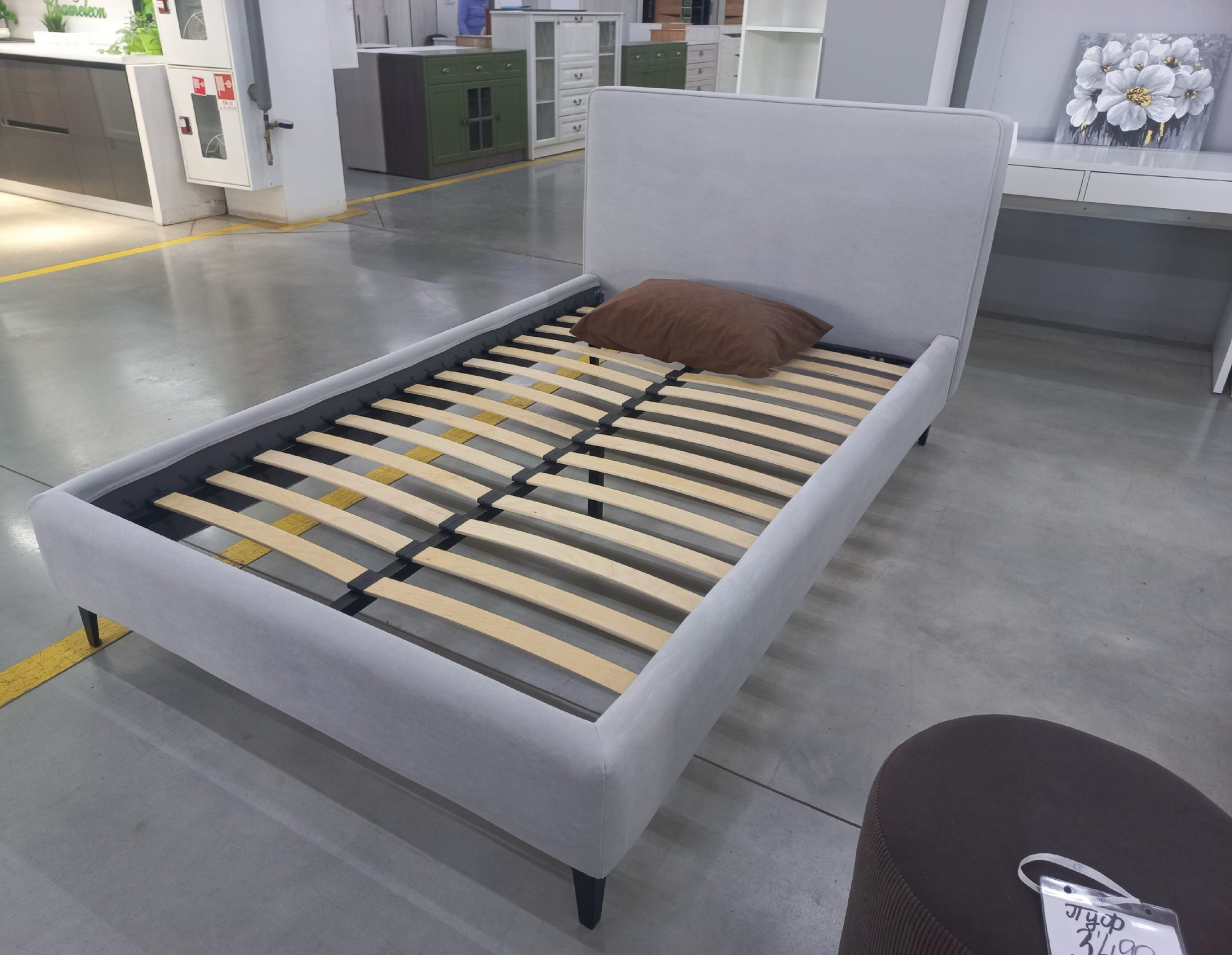 Кровать мягкая, каркас деревянный, ножки металлические. Товар в наличии, посмотреть можно в 1корпусе, место 14.