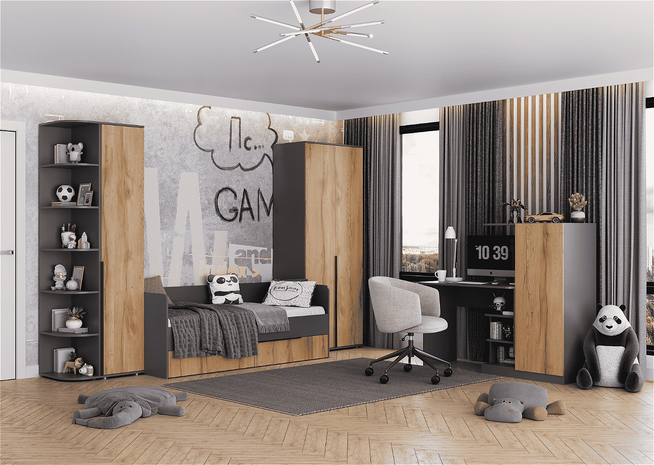 Кровать односпальная с ящиками Стил серый дуб золотистый 80х200