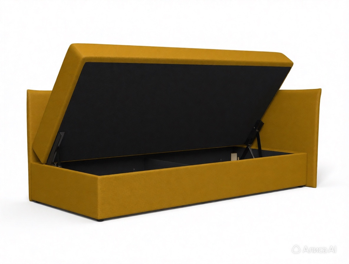 Благодаря подъёмному основанию под кроватью располагается ящик для хранения постельного белья или других вещей.