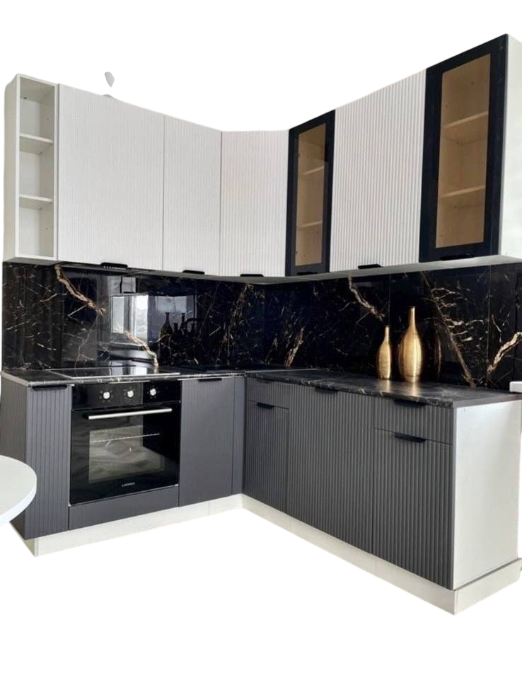 Фасады кухни Норд могут быть выполнены как в гладком варианте, так и с вертикальной фрезеровкой, что позволяет выбрать наиболее подходящий вариант для вашего интерьера. Вертикальная фрезеровка придает кухне особый шарм и делает ее более изысканной.