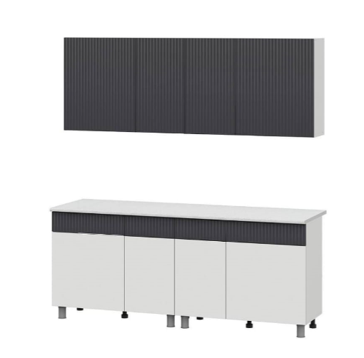 На напольные модули предусмотрена цельная столешница длиной 200 см и толщиной 26 мм.
