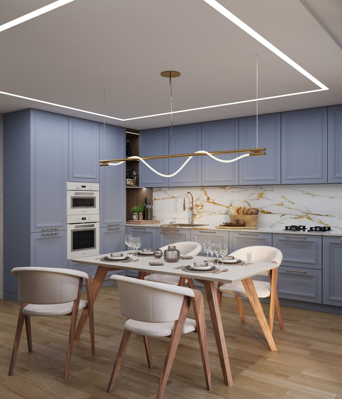Выполняется в матовой эмали, что подчёркивает глубину цвета и делает фасады приятными на ощупь.