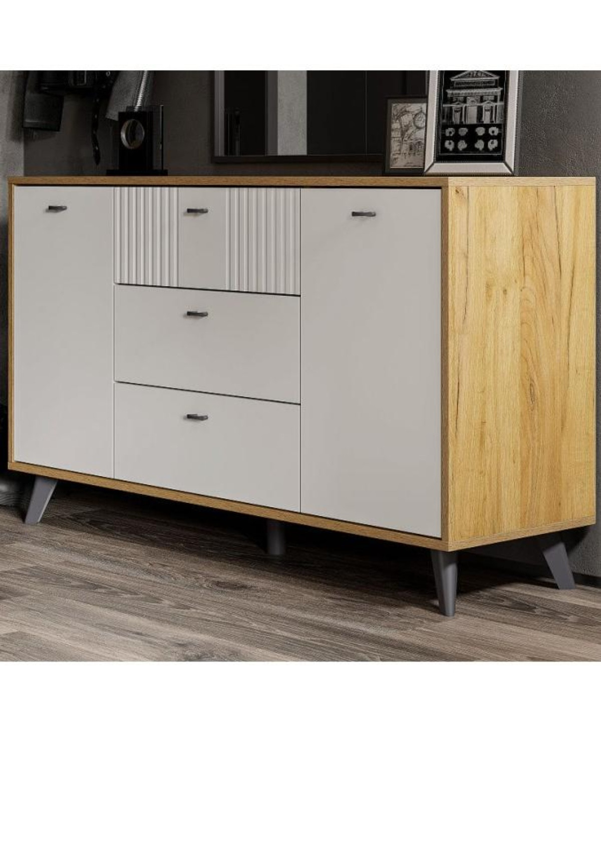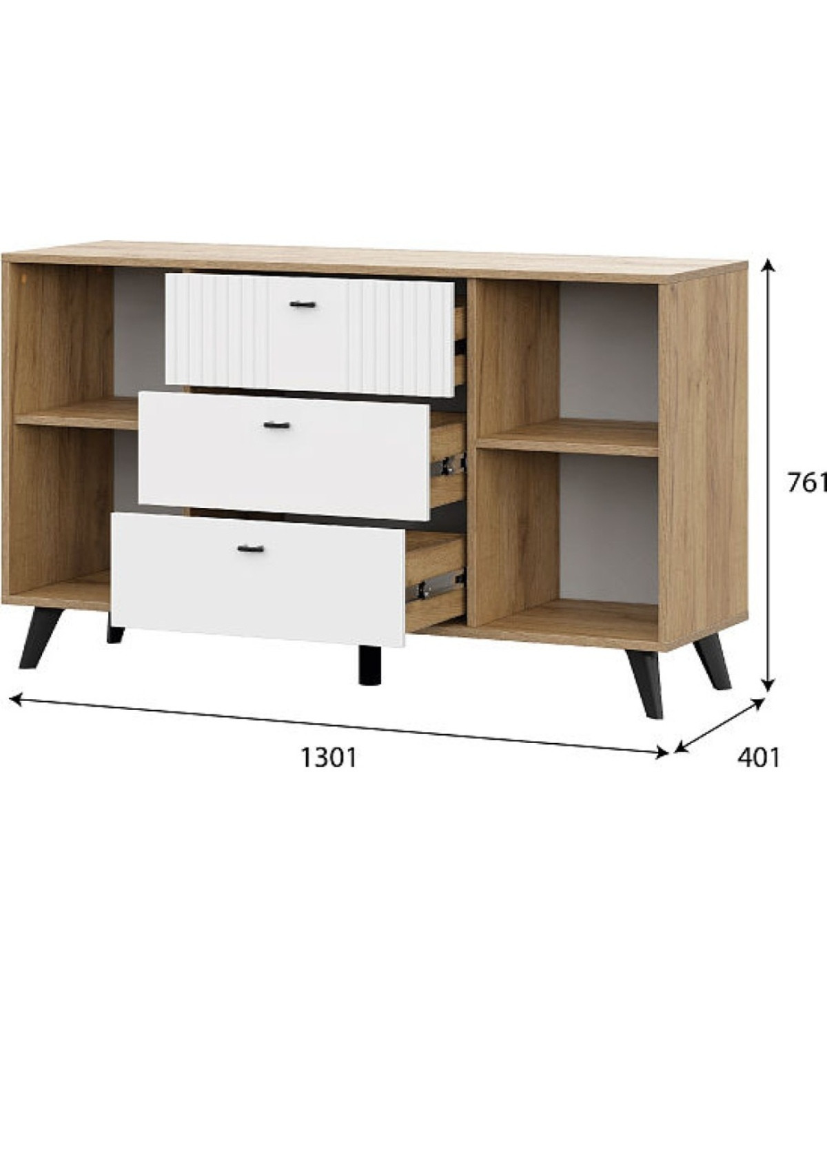 Модульная система "Байкал" Комод 3 ящика двухстворчатый Дуб Золотой/Белый матовый SV