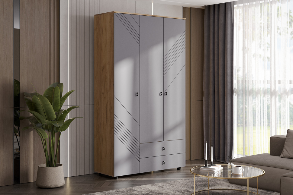 Модульная система "Байкал" Шкаф трехстворчатый (с ящиками) (SAFE) Дуб Золотой/Белый матовый SV