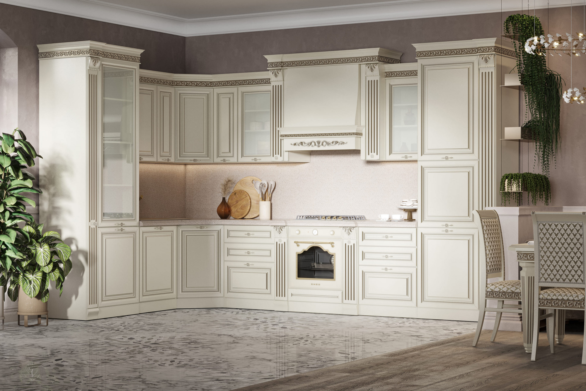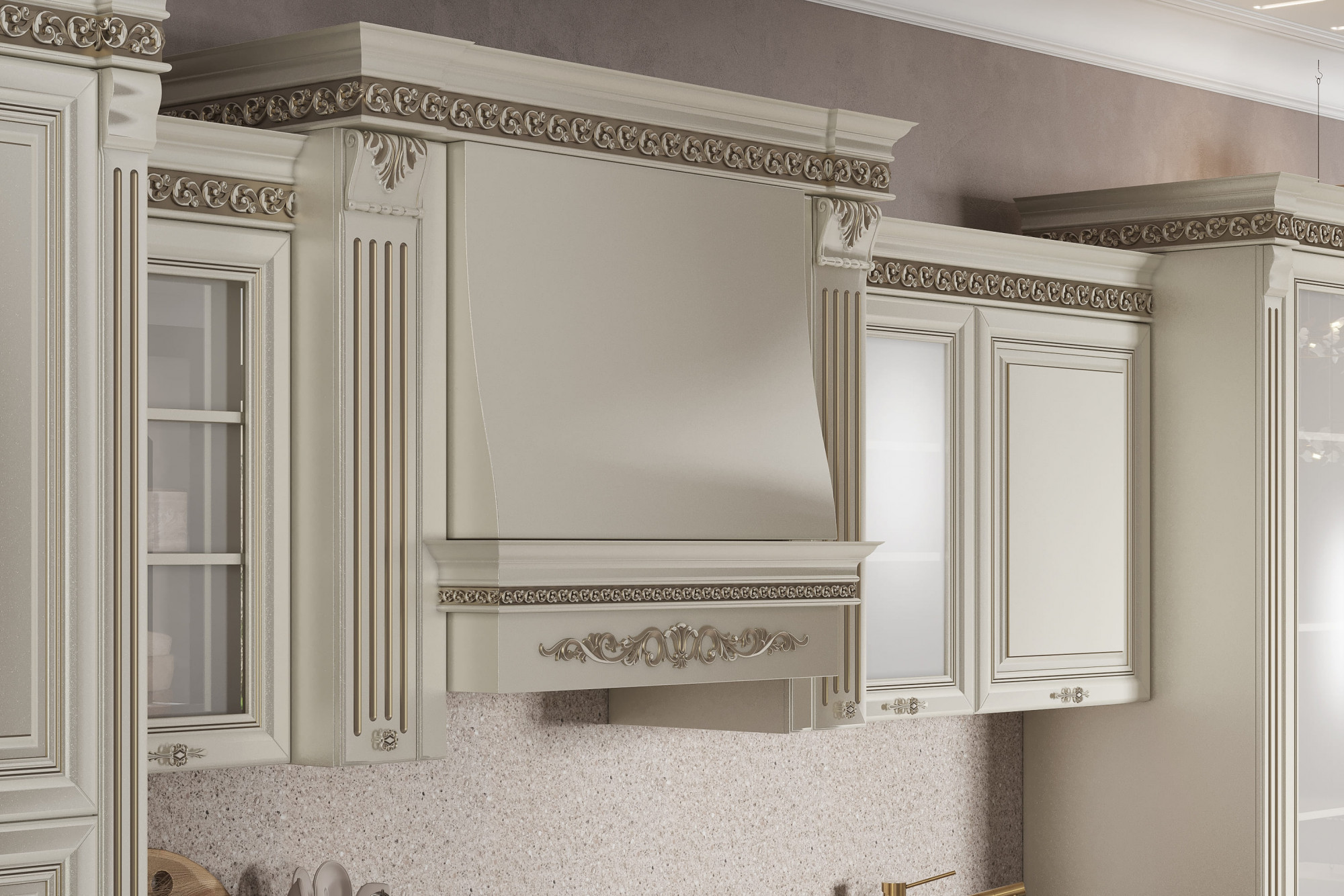 Карниз/Молдинг: Полистирол - высокопрочный термопластичный полимер с особой плотностью, влагостойкий и износостойкий. Запил карниза для пеналов и портала под вытяжку производится на фабрике. Вкладывается запас для самостоятельной сборки остальных участков